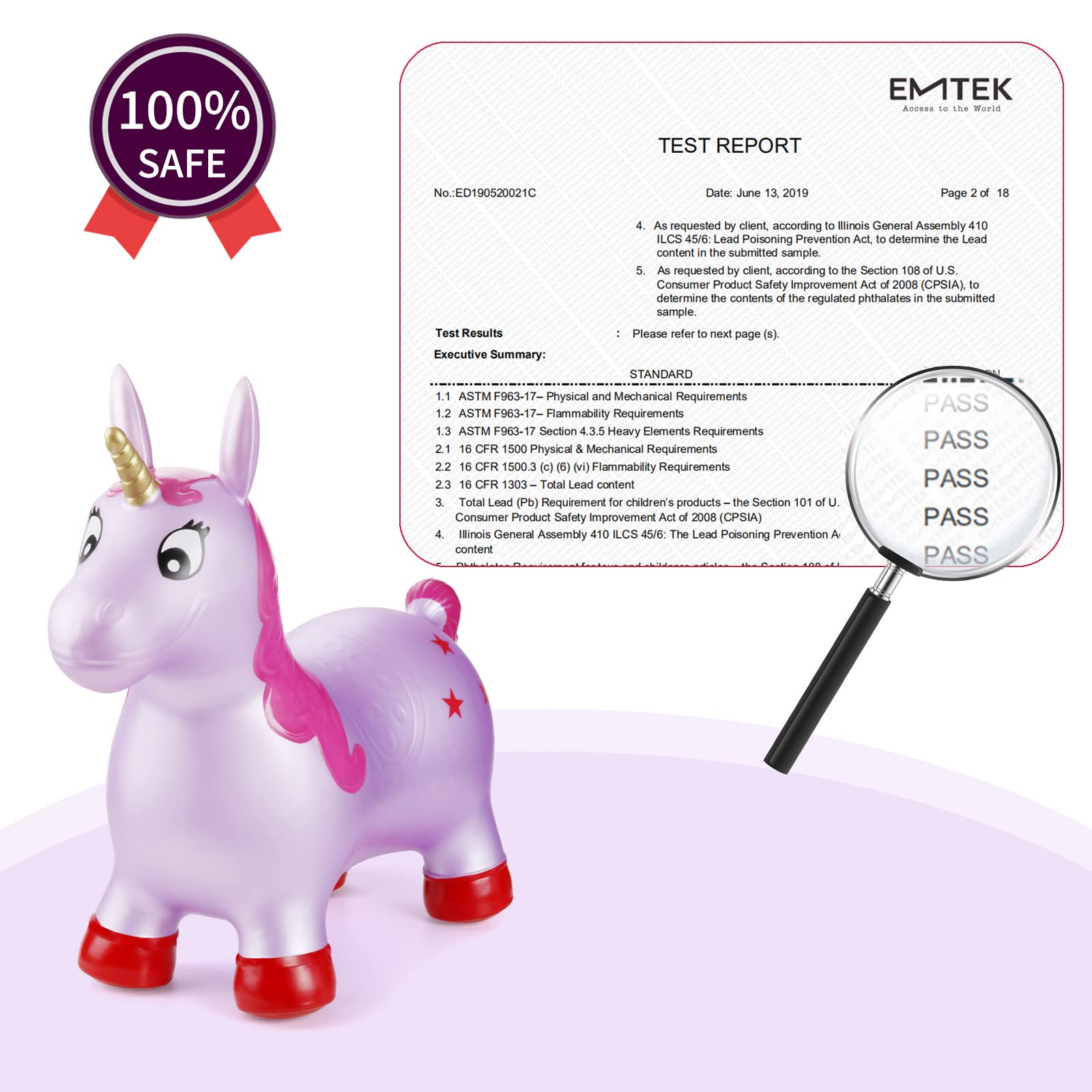 - LEARN AND EXERCISE WITH FUN: Jumping horses not only develop toddlers’ ability of balance and coordination inside, but also exercise the reaction force of visual and auditory movement outside. While it far more stable than fitness balls with 4-legged support.