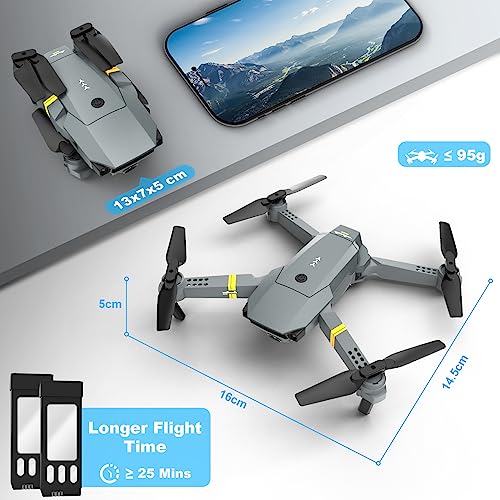 - Enhanced Flight Experience and Safety: Enjoy extended flight time with 2 modular batteries, offering up to 25 minutes of fun. The powerful motor ensures safe and reliable operation with over-current protection. In the event of collisions, the drone's automatic power-off function prevents damage. Plus, the protective frame and spare blades enhance durability for worry-free flying.