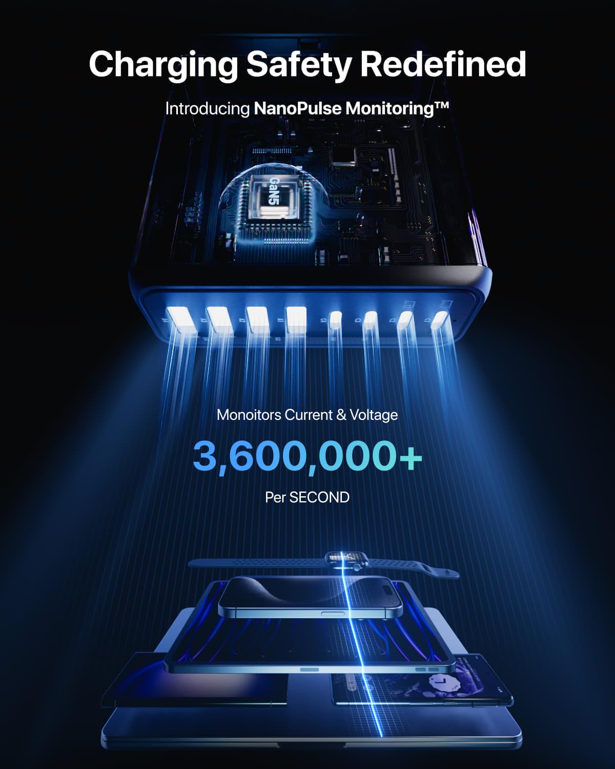 - Unrivaled Multi-Device Charging: Deliver a powerful 140W total output(up to 65W on a single port)across 8 devices simultaneously. Bid farewell to extended waiting times.