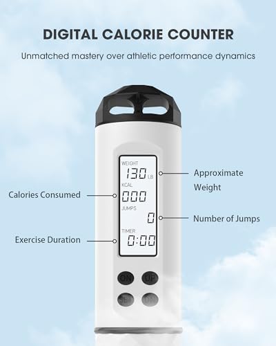 - 🏋️♂️ 【Revolutionize Your Workouts with Our Smart Digital Jump Rope】Tired of losing count during your jump rope sessions? Say goodbye to that frustration with our innovative digital jumping rope featuring a built-in counter. Simply set your weight, and let it automatically track your jumps, time, and calories burned, making your workouts more efficient and enjoyable. 🕒💪