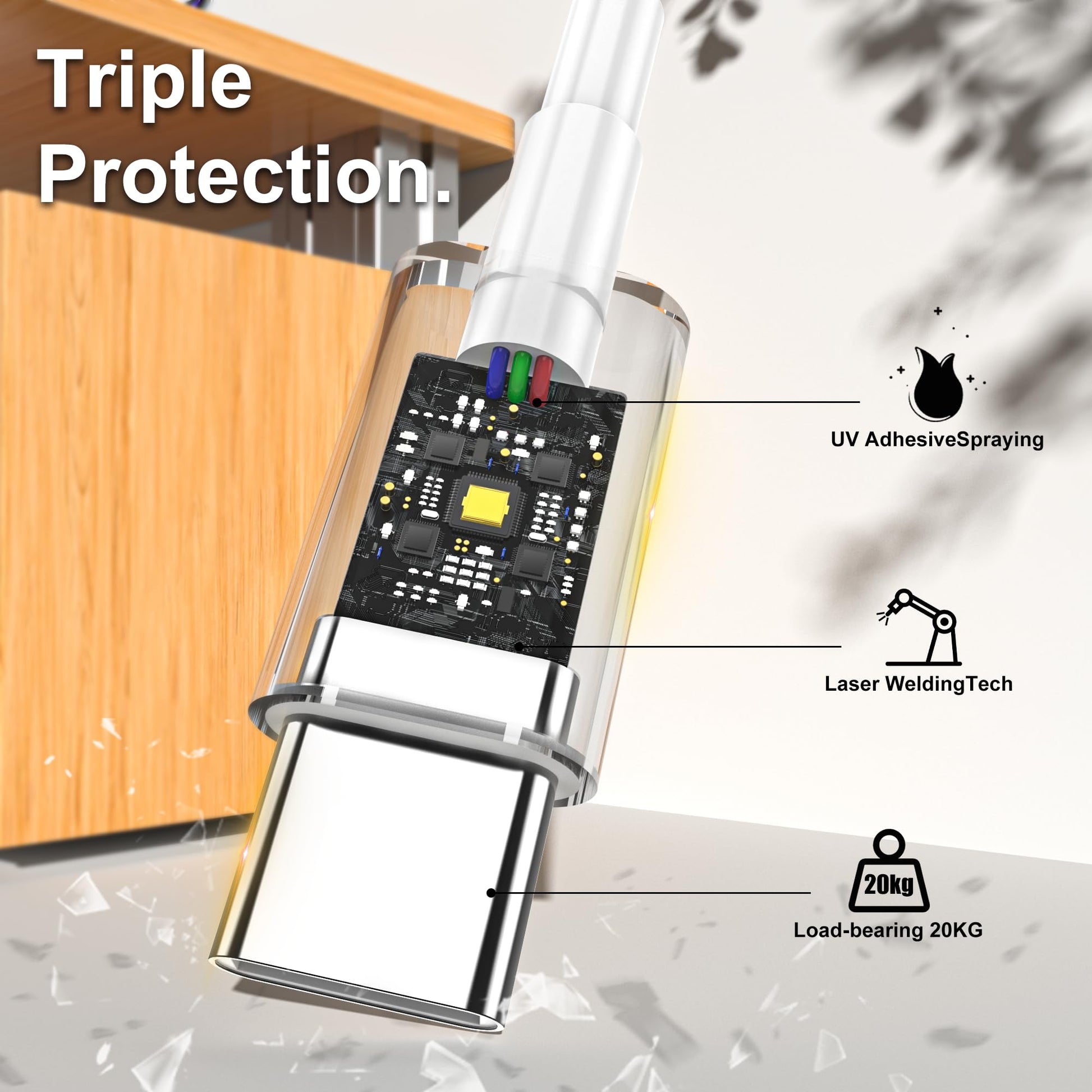 - 【6&10FT USB C iPhone 16 15 Charger Fast Charging Cable】 Built-in advanced protection systems ensure your devices are safeguarded from over-current, over-voltage, overheating, and short circuits. With intelligent power delivery, the charger adjusts to the optimal current required by your device for safe and efficient charging.