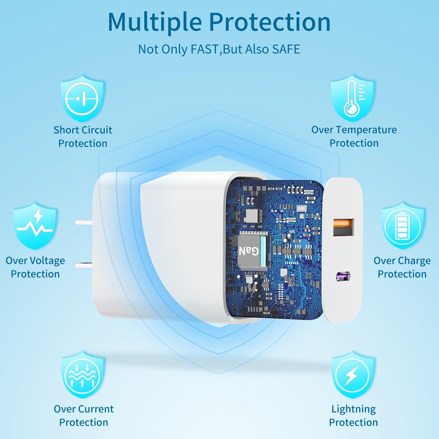 - 【Universal Compatibility】Our USB C and USB Dual port fast charger plug compatible with All Smartphones,Tablets etc. Supports fast charge for iPhone 15/14/13/12/11/Pro/Max/Plus/XR/XS/X/8/7, iPad Air/iPad Pro/iPad Mini, Samsung Galaxy and more. (Comes with USB C to lightning fast charging cable, does not include USB A to lightning/USB C cable and USB C to USB C cable