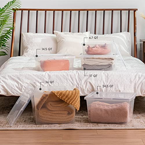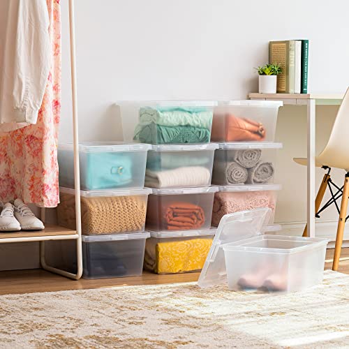 IRIS USA 17 Qt Clear Storage Box, BPA-Free Plastic Stackable Bin with Lid, 12 Pack, Containers to Organize Shoes and Closet Shelves, Classroom Organization Teacher Tools, Game Storage