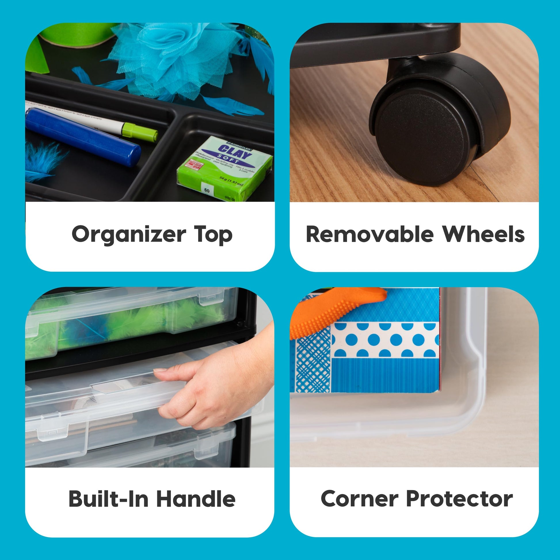 IRIS USA 6 Drawers Scrapbook Organizer Top Plastic Storage Cart with casters, Black