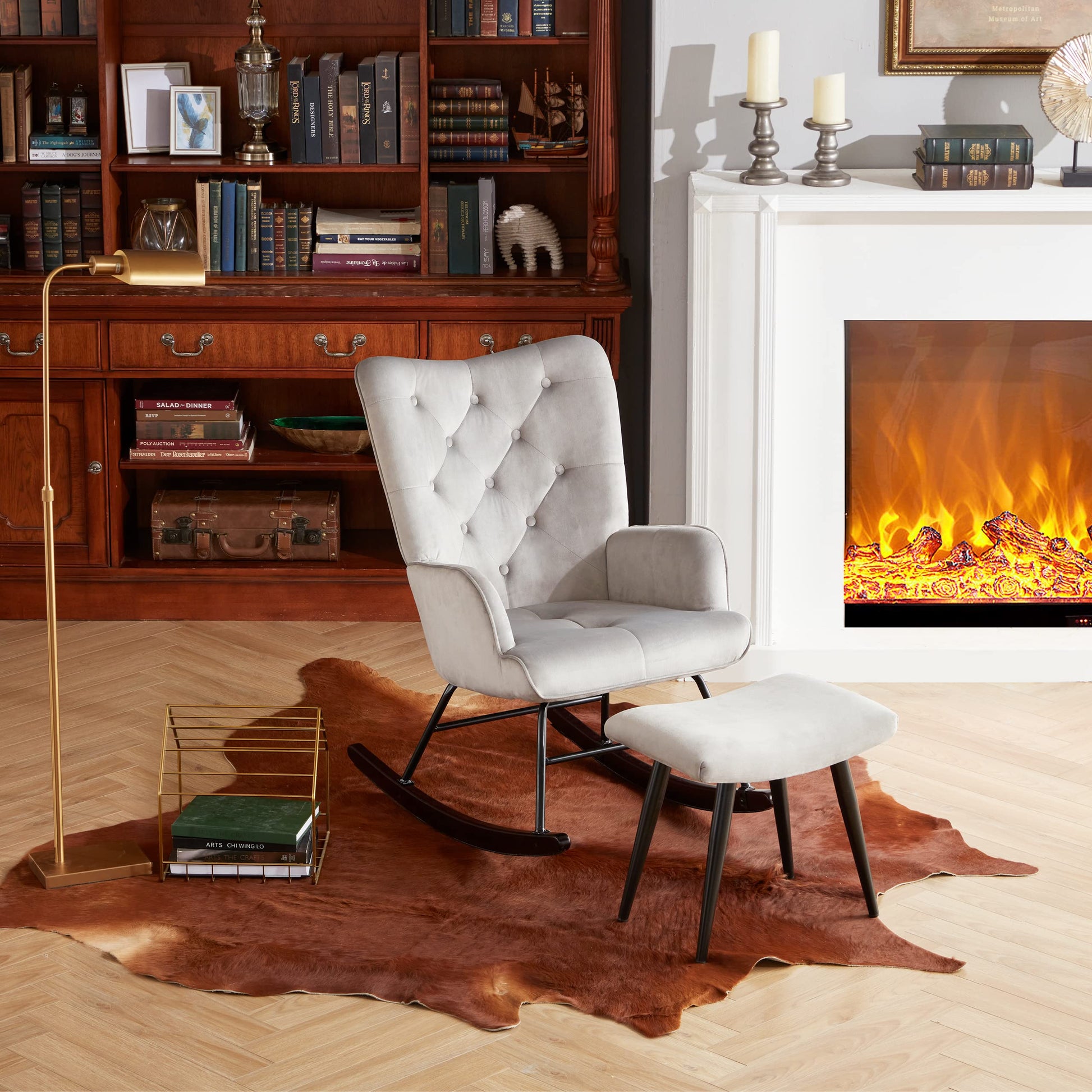 Iroomy Velvet Rocking Chair Nursery Glider Chair, Comfy Nursery Rocking Chairs W/Ottoman, Small Nursing Chair Rocking Chair Indoor, Modern Nursery Chair Rocker for Baby/Kids Living Room/Bedroom-Grey