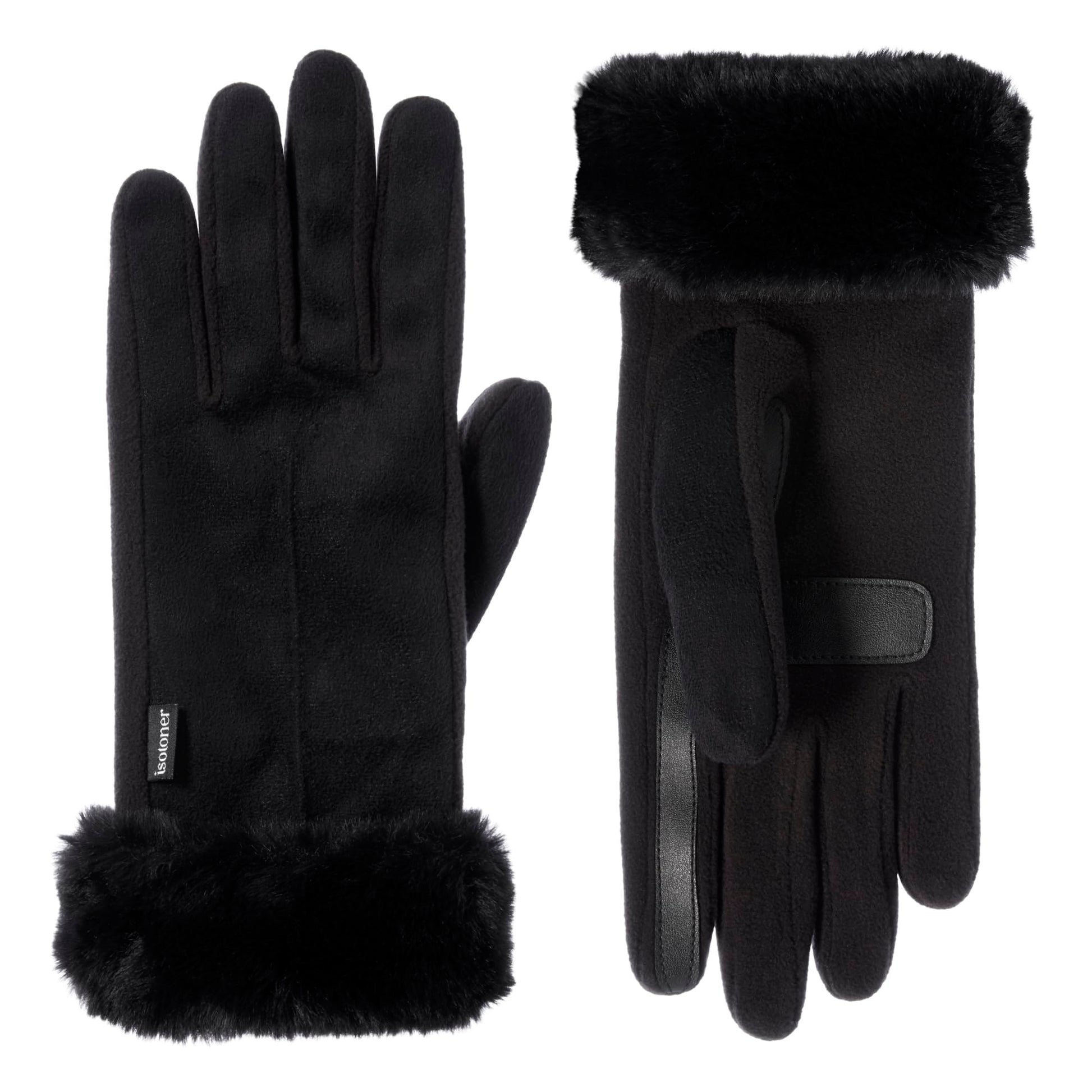 - ICONIC DESIGN: Perfect for everyday wear, isotoner's classic 4-way stretch fleece material on the palm provides maximum flexibility while the fleece lining keeps you cozy during chilly winter days and our recycled faux fur cuff adds style, versatility, and sustainability