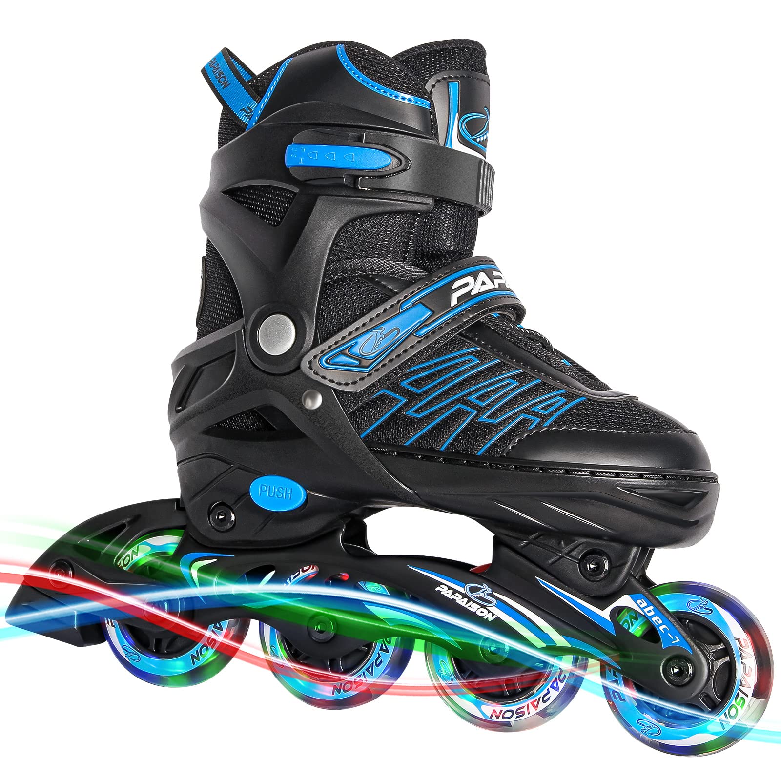 - 8 WHEELS ILLUMINATING - Our inline skates for kids and adults outdoor come with four illuminating wheels that lights up automatically when you start to skate. The lights are powered by wheels rolling and never need replacement batteries! Premium performance and special light up bonus, totally worth the price!