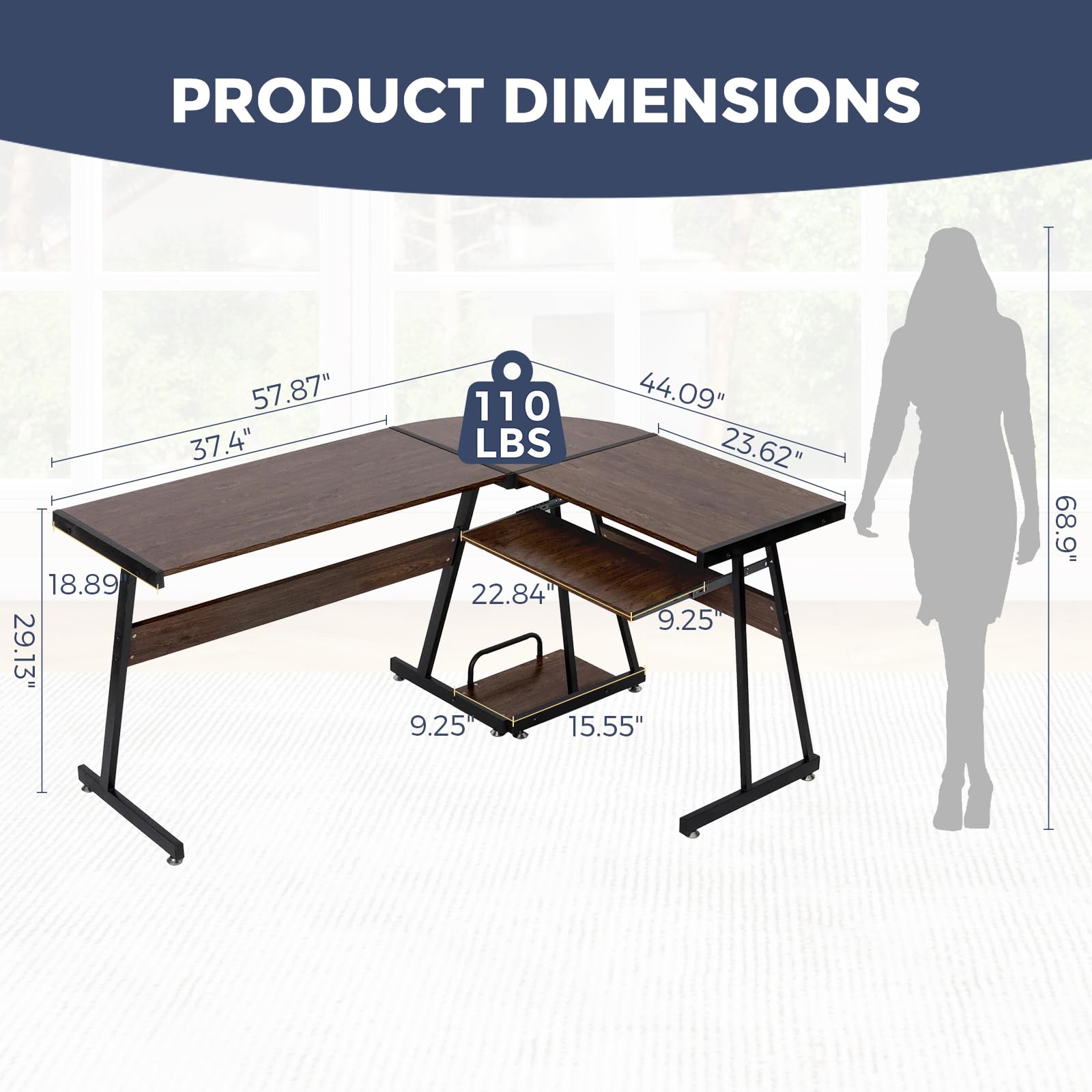 - [Strong & Durable Construction] Constructed by heavy-duty powder coated rustproof steel frame & wood boards in a scientific way, strengthened by sturdy connectors & parts, to provide strong stability and sturdiness. The corner desk steel frame is processed with matte black paint. Max weight capacity: 110Lbs.