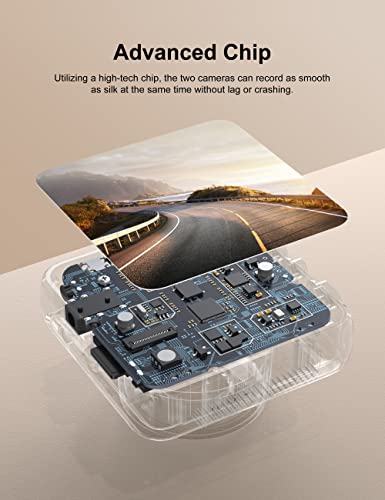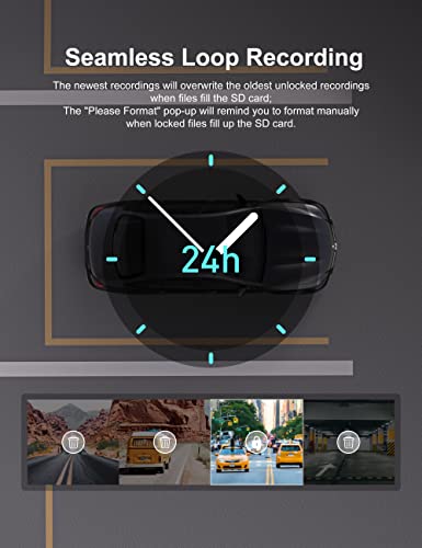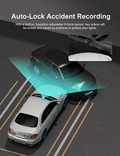 - Seamless Recording and G-sensor: The dash camera front and rear are equipped with a built-in G-sensor that detects and automatically records collision or shock. This function is critical for accident evidence and peace of mind while driving. Additionally, loop recording automatically overwrites the oldest unlocked file when the MicroSD card is full, ensuring that you will have enough storage space.