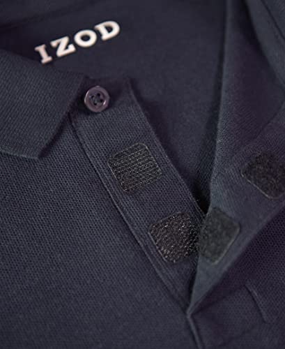 IZOD Boys' School Uniform Adaptive Short Sleeve Polo Shirt, Velcro Closure & Faux Buttons, Comfortable Pique Fabric, White, 4-5