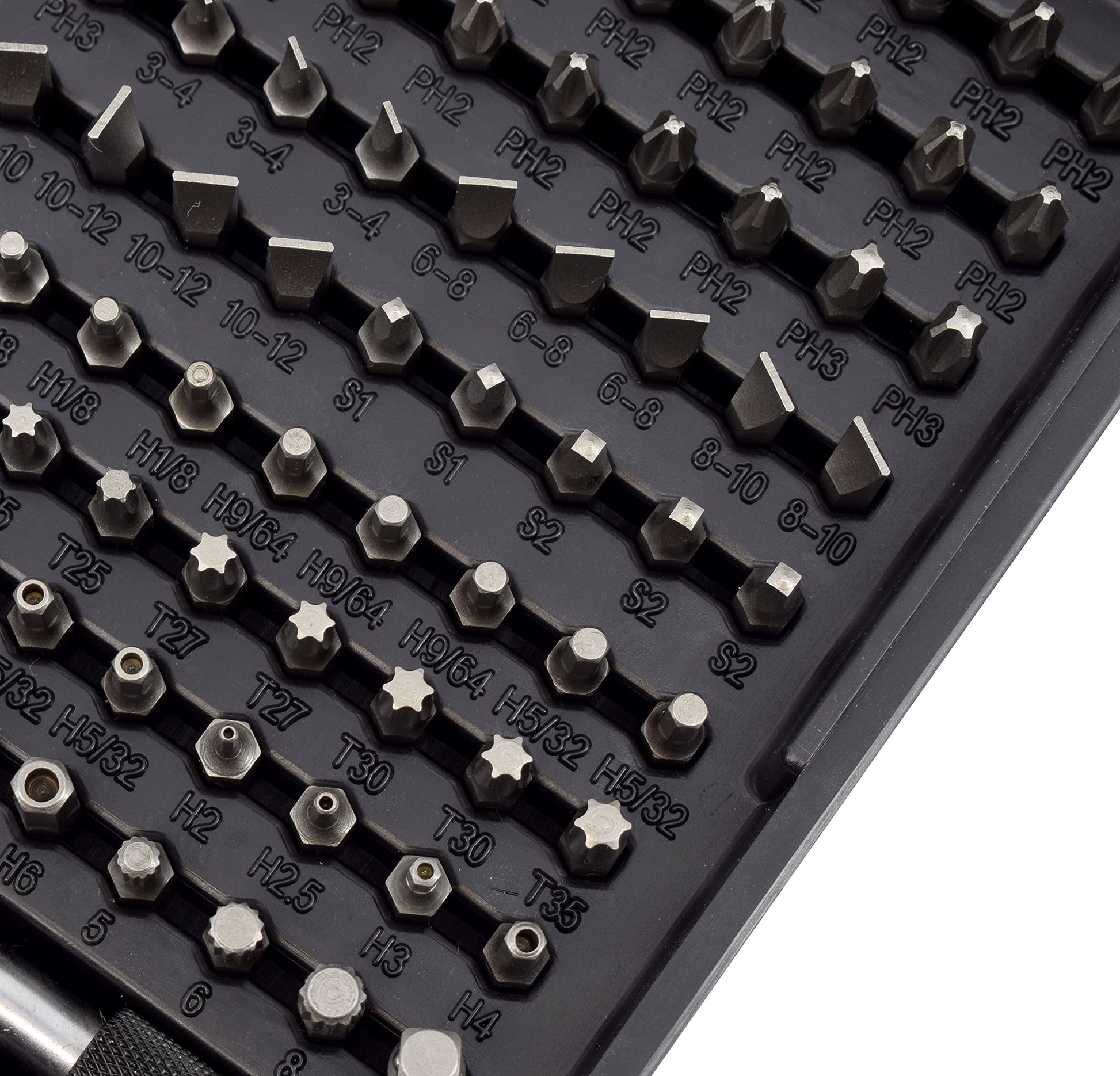 - The Ultimate Set: 218 pieces including Nut Drivers, Security Bits, Torx, Slotted, Phillips, Square, Pozi, Hex, Socket, and other specialty bits in commonly used sizes. Also includes Magnetic Bit Holder and Quick-Change Adapter for fast and easy switching between sizes.