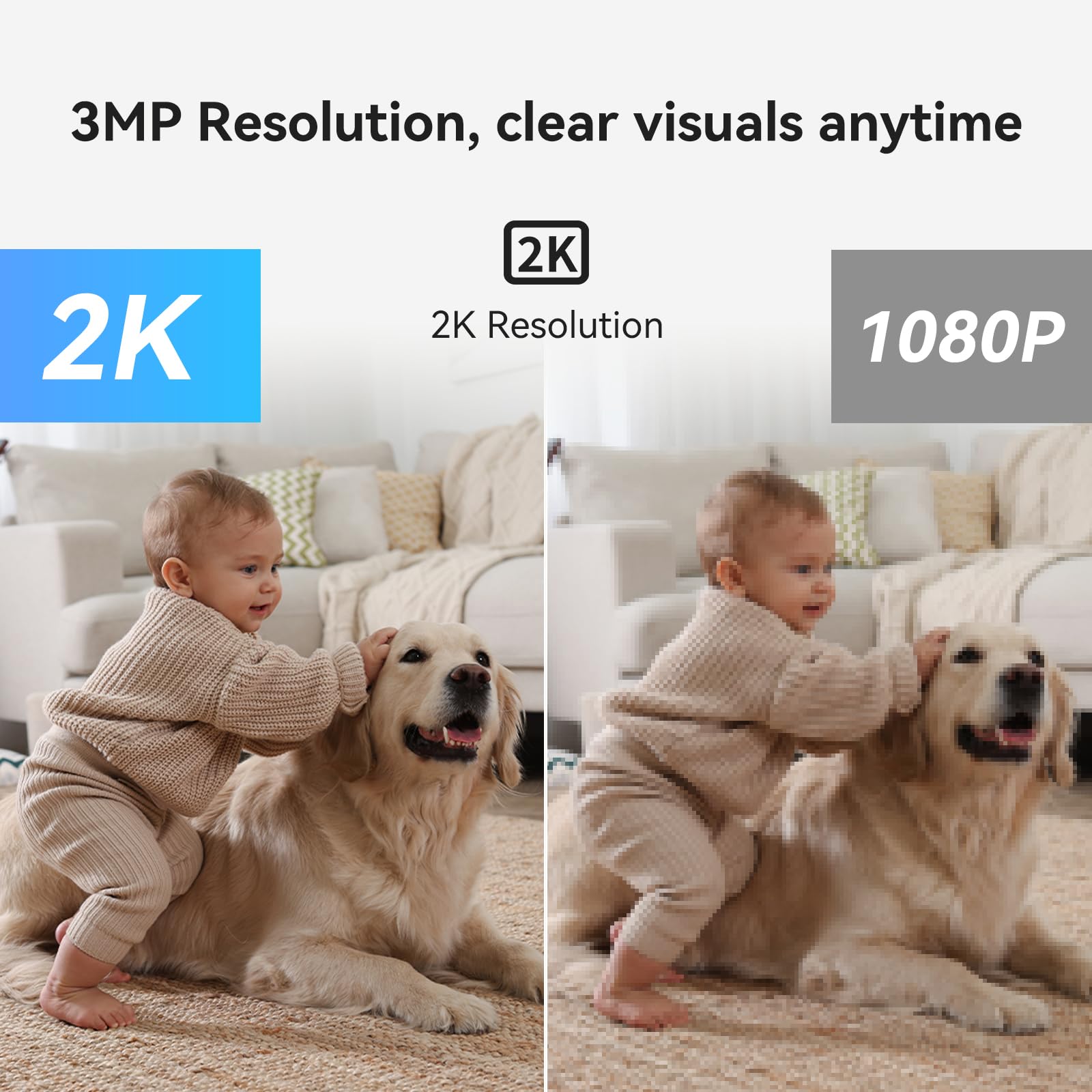 - 2K 3MP Resolution & Real-Time Motion Detection Alerts: Crystal-clear detail in every shot. When motion is detected, the wireless indoor camera will automatically record a 10-15 seconds alert video to the cloud which will be kept for 24 hours to alert you any possible abnormalties