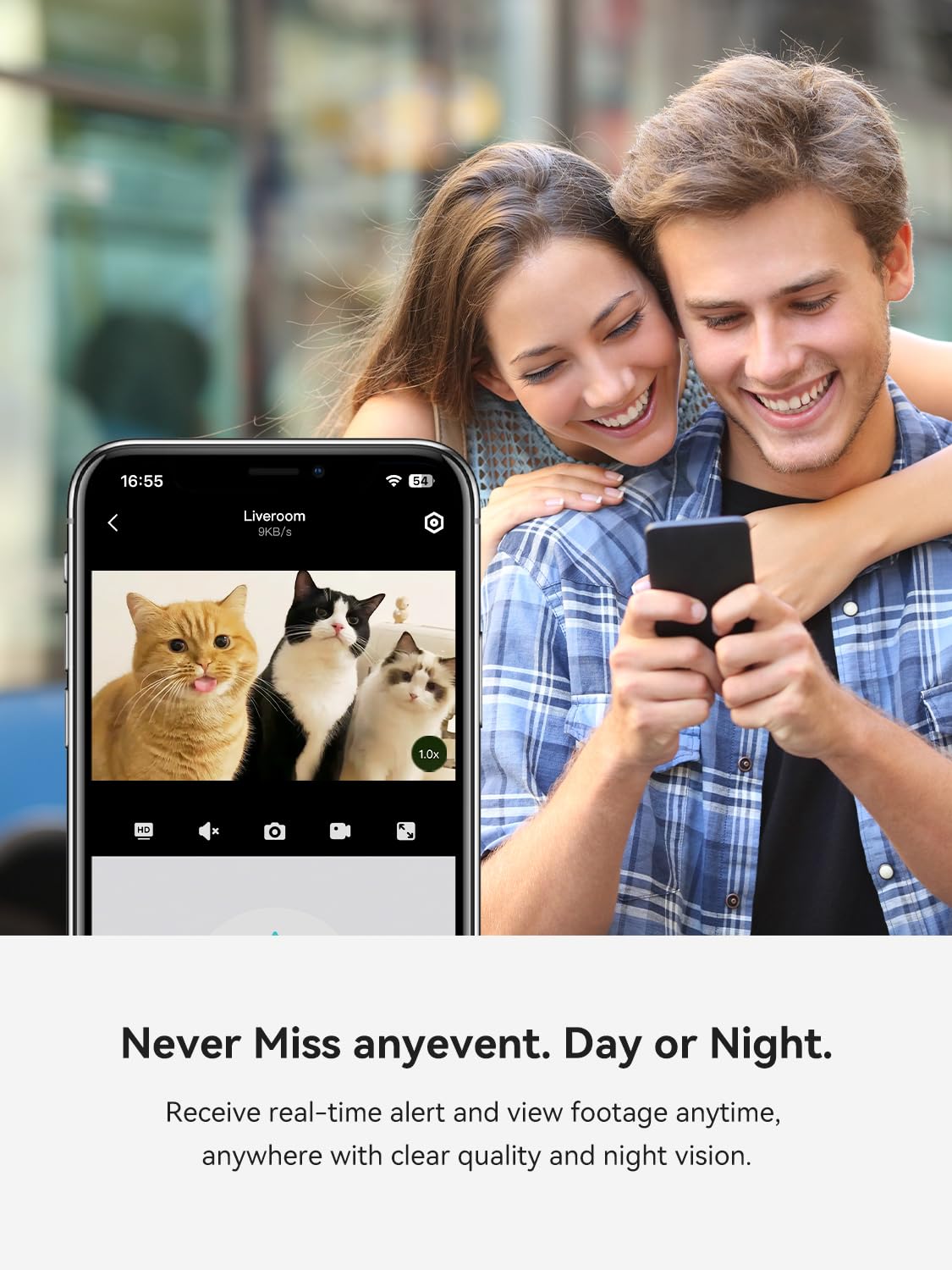 - Night Vision & Two-Way Audio:This home security camera features advanced infrared night vision, providing clear and vivid images up to 33 ft, even in complete darkness. The built-in microphone and speaker enable two-way audio, allowing you to stay connected with your family anytime, anywhere.