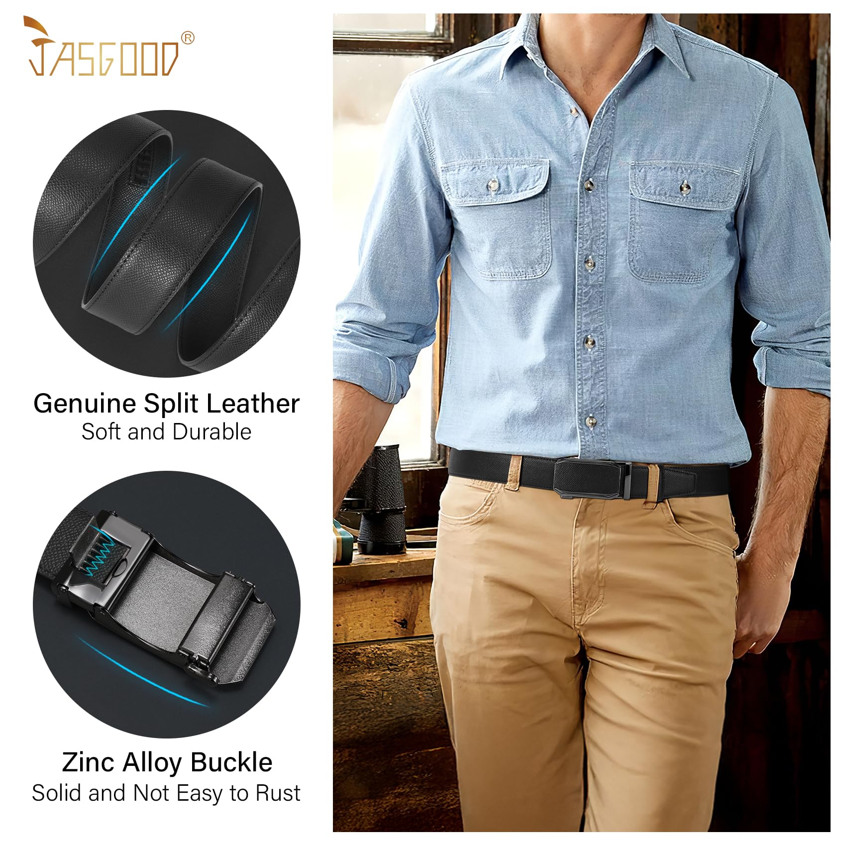 - Automatic Buckle Leather Belt : Utilizing advanced automatic locking technology, this mens adjustable ratchet belt not only secures tightly but also maintains long-lasting durability, providing a stable wearing experience. Its resistance to loosening allows you to feel secure during various activities, avoiding embarrassing situations.