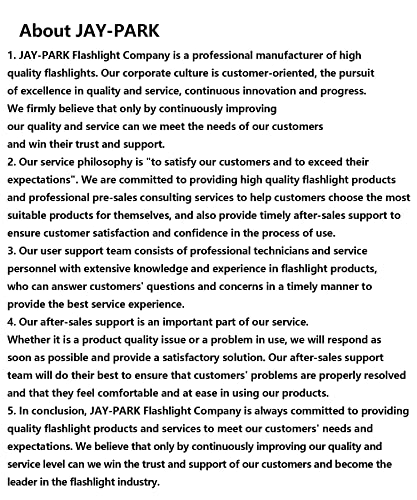 - π§ PROVIDE 24 MONTHS AFTER-SALES GUARANTEE: From the time you choose JAY-PARK, you have a strong and powerful after-sales service guarantee, we provide free return or exchange for any quality problems within 180 days, within 24 months we provide 7*24 hours after-sales quality guarantee, you can contact us at any time with any questions, we are happy to answer and provide after-sales support.