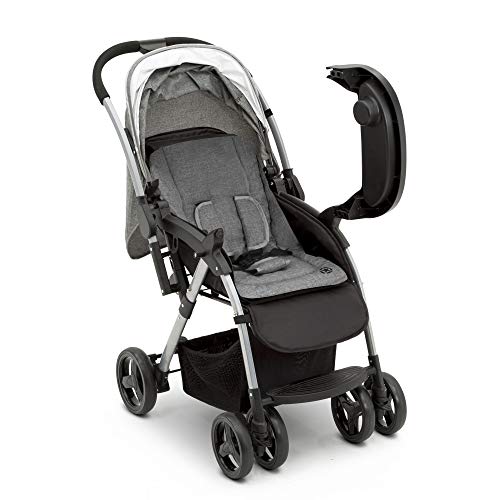 - Ideal comfort: Extendable European-style canopy with pop out UPF 50+ sun visor; Reclining seat with three positions; Adjustable footrest; Child tray with cup holder swings away for easy ins and outs