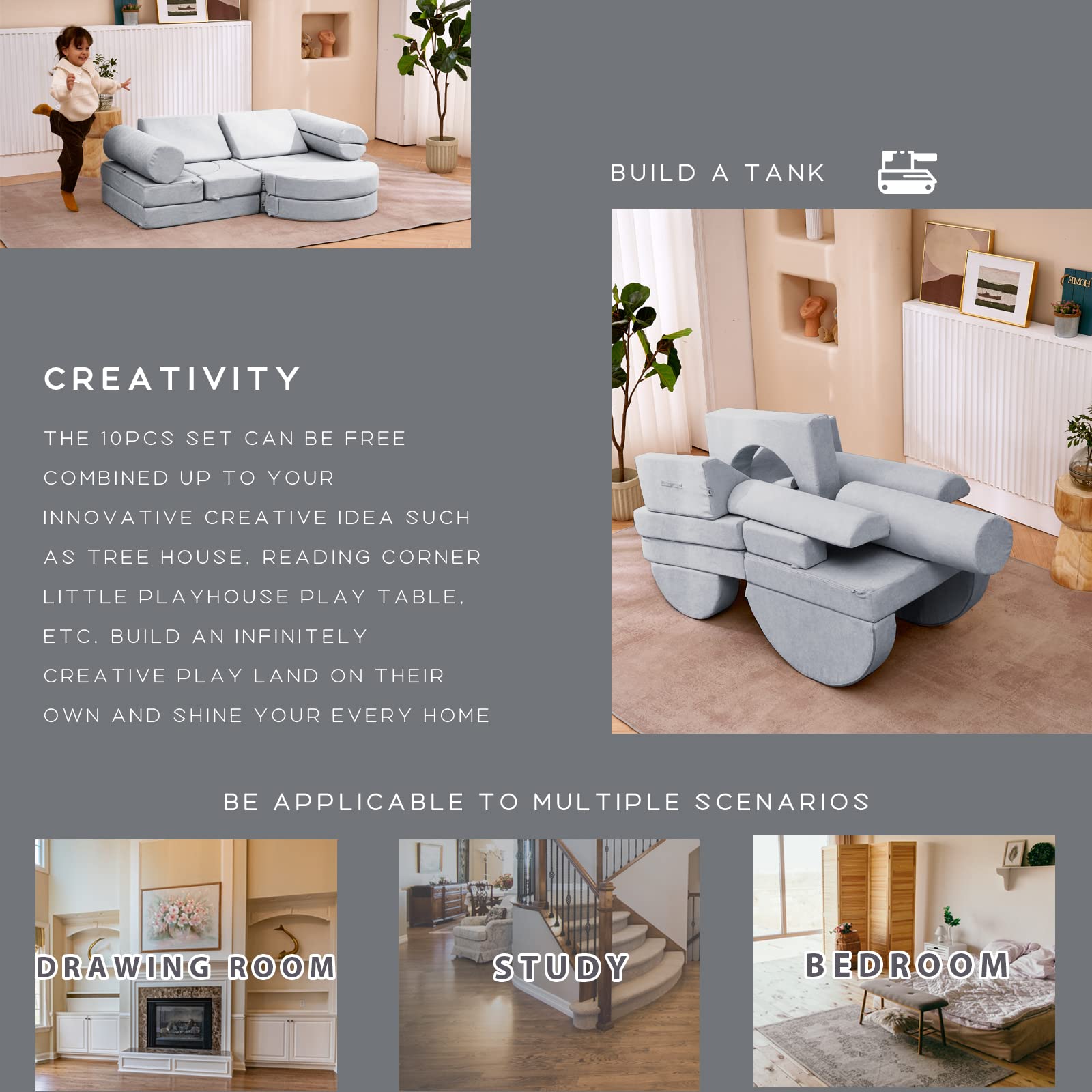 - Unleash children's creativity – The 14pcs set can be free combined up to your innovative creative idea such as tree house, reading corner,little playhouse,play table, etc. Build an infinitely creative play land on their own and shine your every home interior!