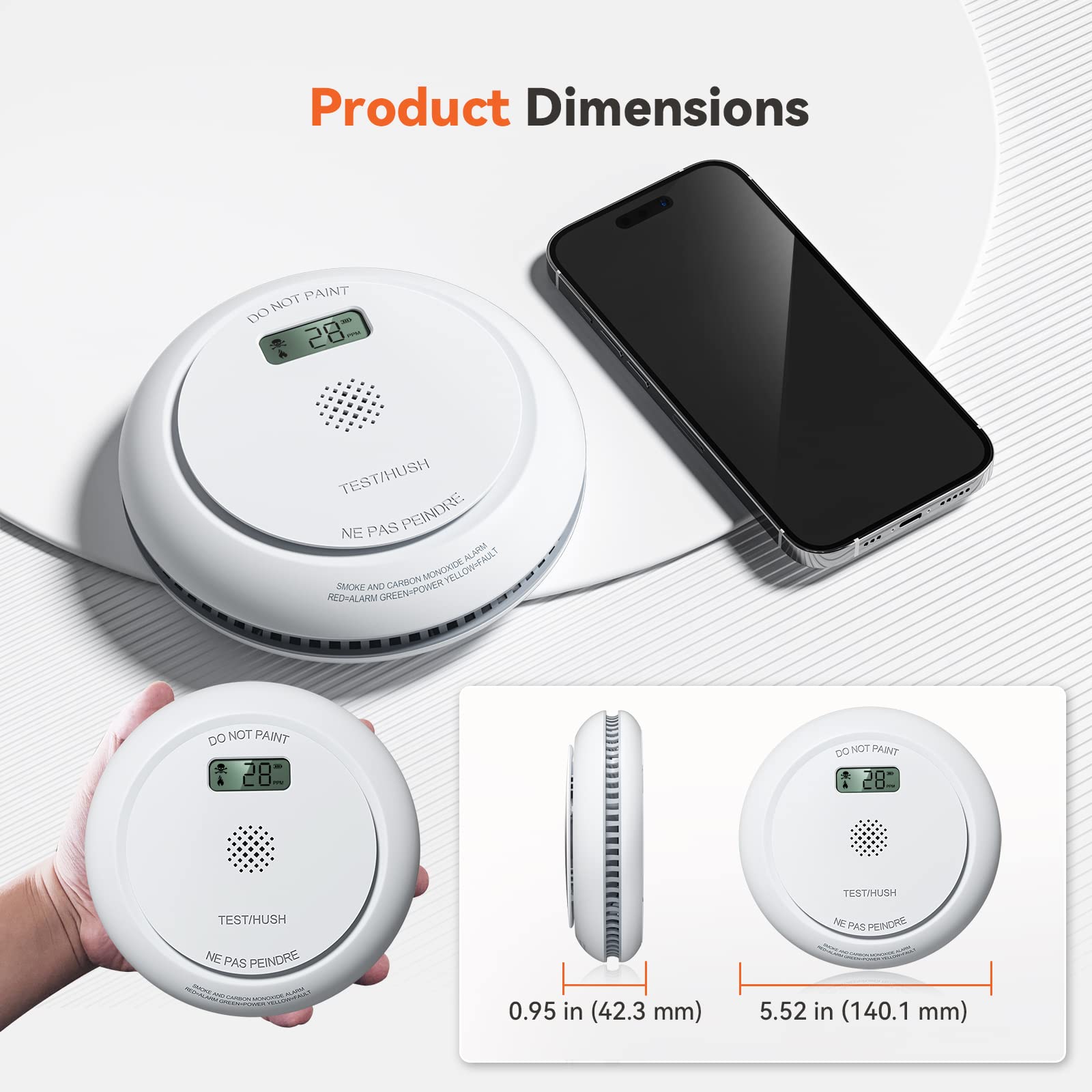 - [Simple Installation] The smoke carbon monoxide alarm combo requires no rewiring and is easy to mount on any wall or ceiling without an electrician. The humanized design of the mounting bracket is suitable for the vast majority of screw hole pitches (30-92mm), no need to drill again.