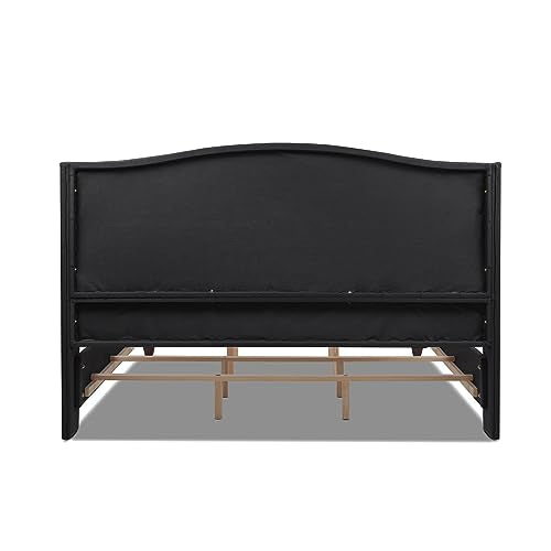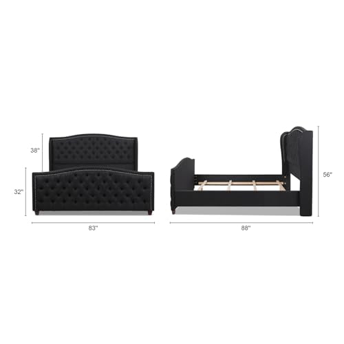 Jennifer Taylor Home Marcella Upholstered Shelter Headboard Bed Set, King, Jet Black Woven