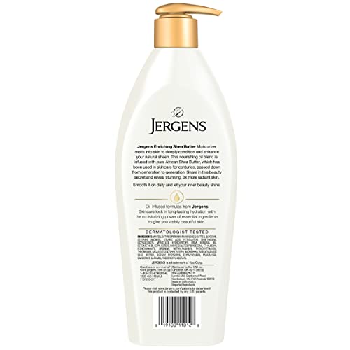 Details: Give your skin the deep conditioning moisture it needs with Jergens Shea Butter Deep Conditioning Moisturizer! It refreshens and conditions dry, dull skin and revives skin tones, leaving you with radiant skin. Infused with Shea butter known for its restoring properties, this formula helps to condition and soothe your skin, leaving you with a pleasant, light and comforting scent. Satisfaction Guaranteed. Limitations may apply.