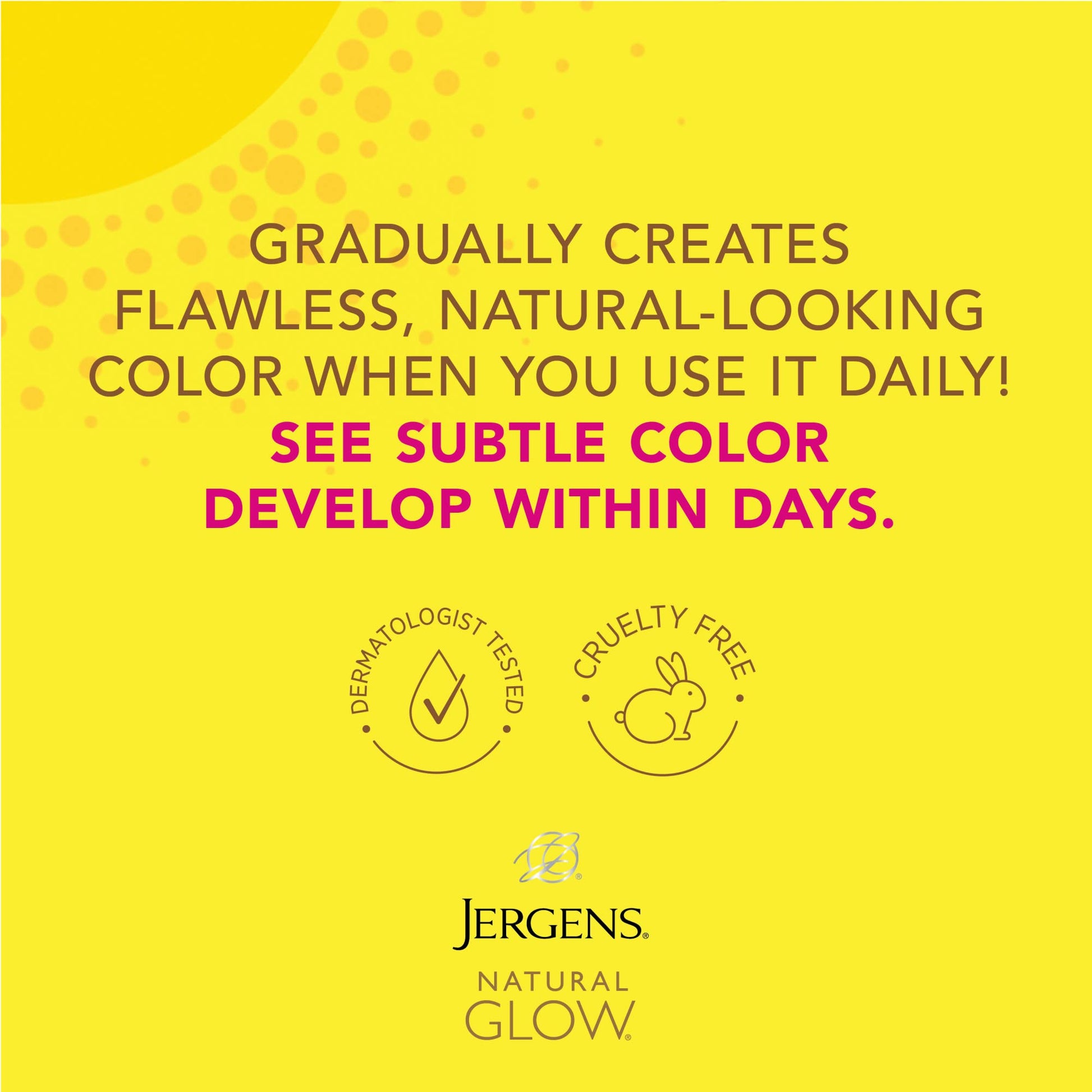 - SELF TANNING FACE SUNSCREEN - With Jergens Daily Moisturizer's blend of nutrients and skin-tone enhancers, expect a beautiful, natural-looking facial tan within a week; Try going makeup free in 7 days.