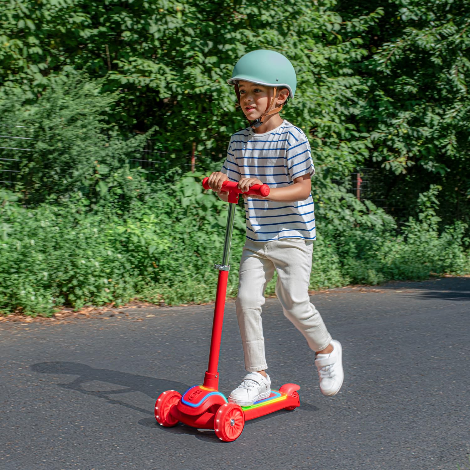 - [CHANGEABLE LED LIGHTS]: Kids can cycle through 7 different lighting colors and patterns in the frame with the push of a button. Motion-activated mini lights in the wheels add to the fun. The lights help keep kids visible and in sight.