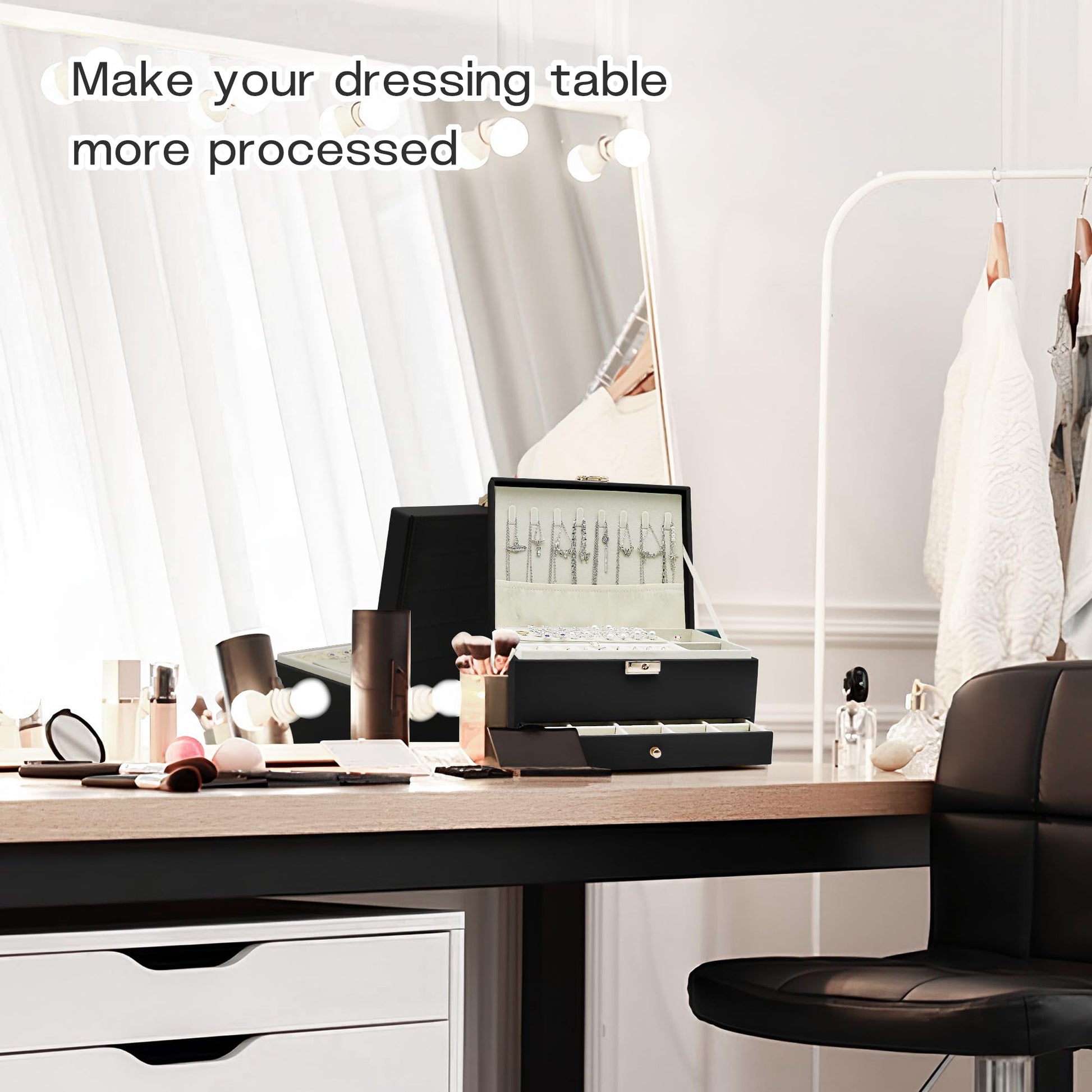 - Space-Saving Jewelry Holder: With our jewelry display case, whether it is a large piece of jewelry or a small earring, there is a place to store it, all your jewelry will be organized and easy to access. From then on, you have a bright dressing table that saves a lot of space and makes your room look more tidy and elegance. Moreover, the classification design of our travel case for jewelry makes your jewelry clear at a glance, reducing the time for searching.