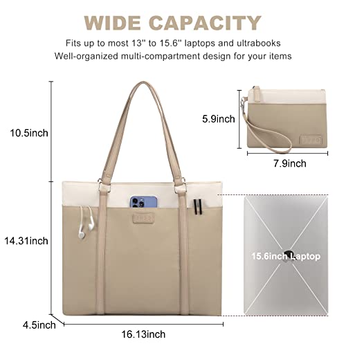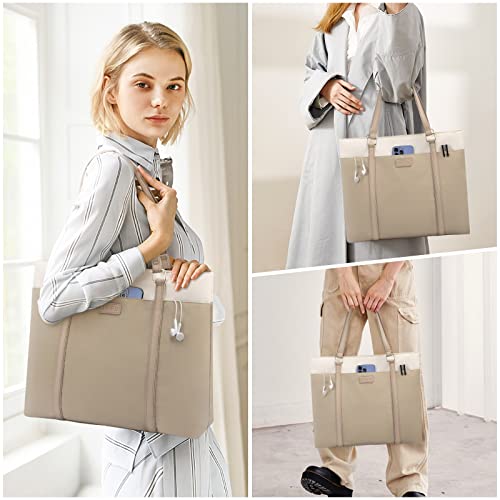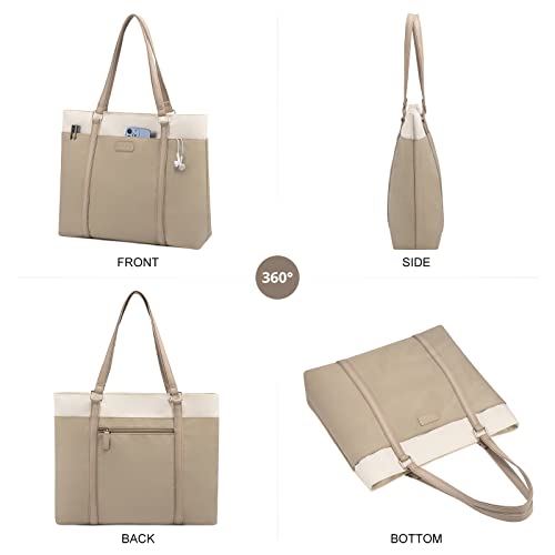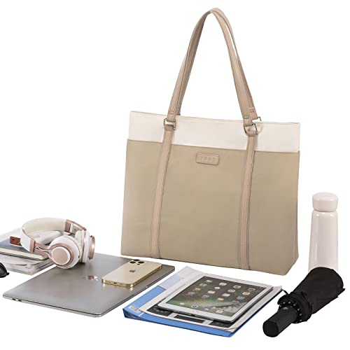 - 【LARGE CAPACITY LAPTOP TOTE BAG】: This teacher bag is large and spacious. There are two main compartments inside. One section is for laptop, the other compartment can hold almost everything you need for work such as umbrella, drink bottle, purse, day planner, keys and small carryall. It's a large tote bags for women to stuff between work and travel.