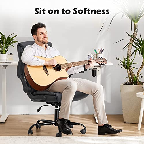 JHK Executive High Back Big and Tall Leather Office Desk Chairs with Flip Up Arms Ergonomic Lumbar Support, Adjustable Height,Wheels, Soft Padded, Black