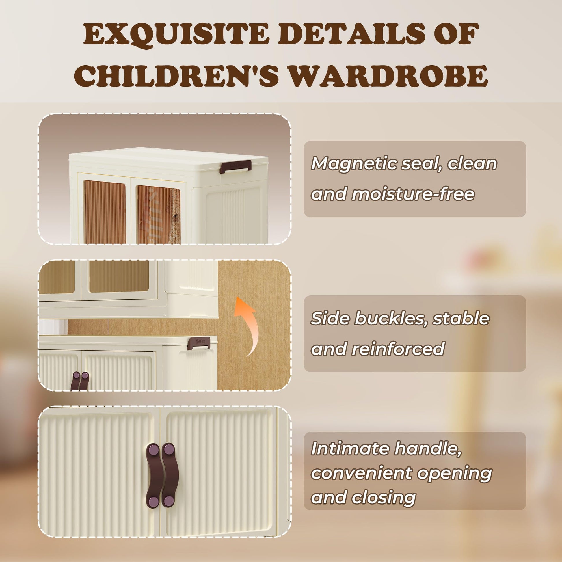 ăThe Integrated Structural DesignăThe kid's wardrobes eliminates the need for any assembly tools. Unlike cube wardrobes and wooden furniture, our kids armoire wardrobe closet allow you to bid farewell to tedious assembly and enjoy storage fun. When you need a portable kids wardrobe closet for storage, pull out and use to easily assemble the entire cabinet