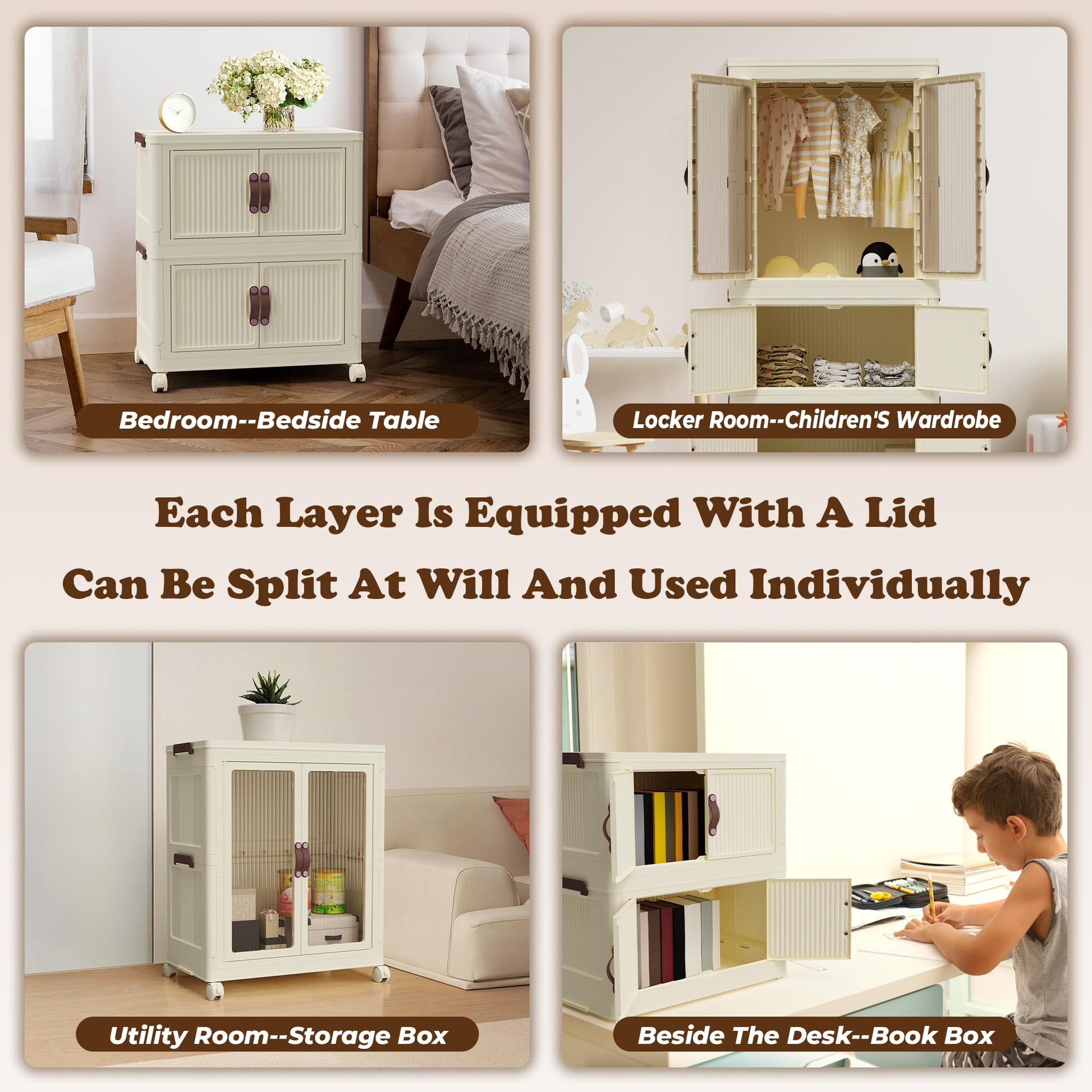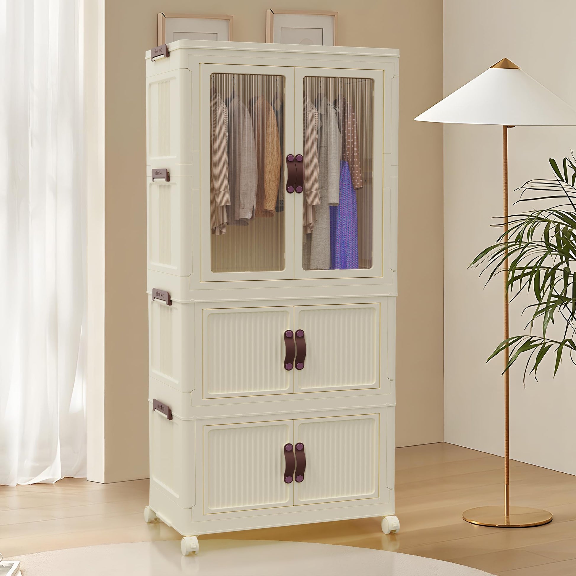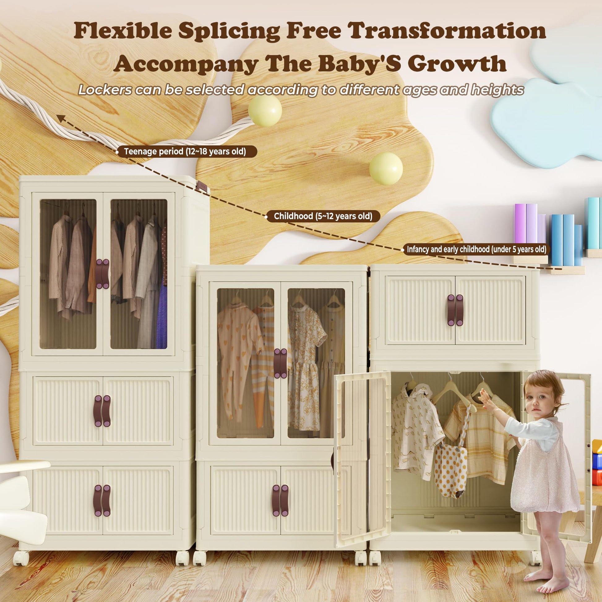 - đăEasy Install, Foldable And StackingăOur wardrobe closet with doors enables quick expansion and folding, which eases the installation and disassembly, without any assembly tools. You can stack it at different heights and use it as storage for according to the height of the toddler, making it easier for the toddler to access. When you don't need a portable closet, you can fold the wardrobe without taking up space