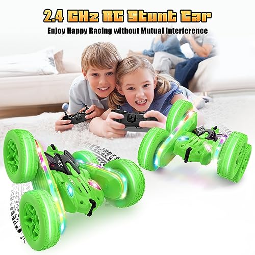 Jimdella Remote Control Car,RC Cars with sides light strip and Headlights,Double Sided 360 Flips Rotating RC Stunt Car,2.4Ghz All Terrain Toys for Ages 4-6 Kids Toy for Boys Girls Birthday Gift(Green)
