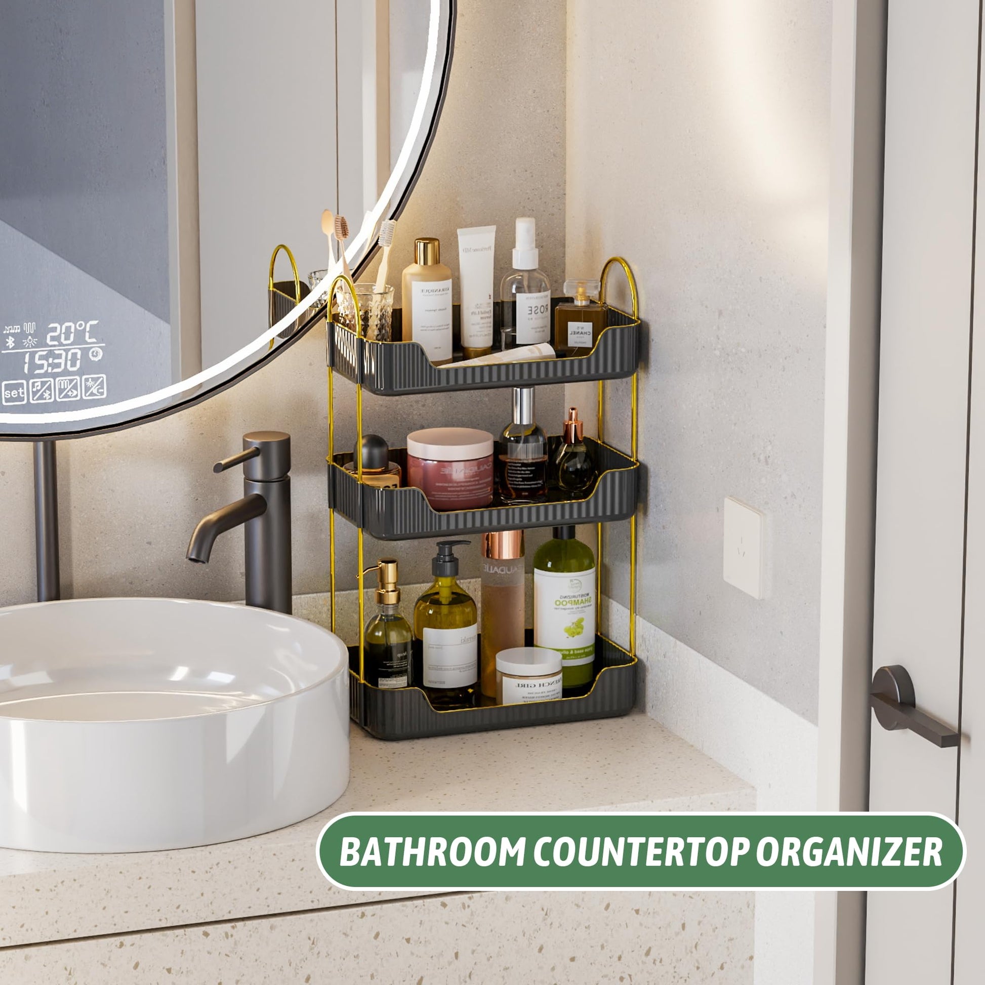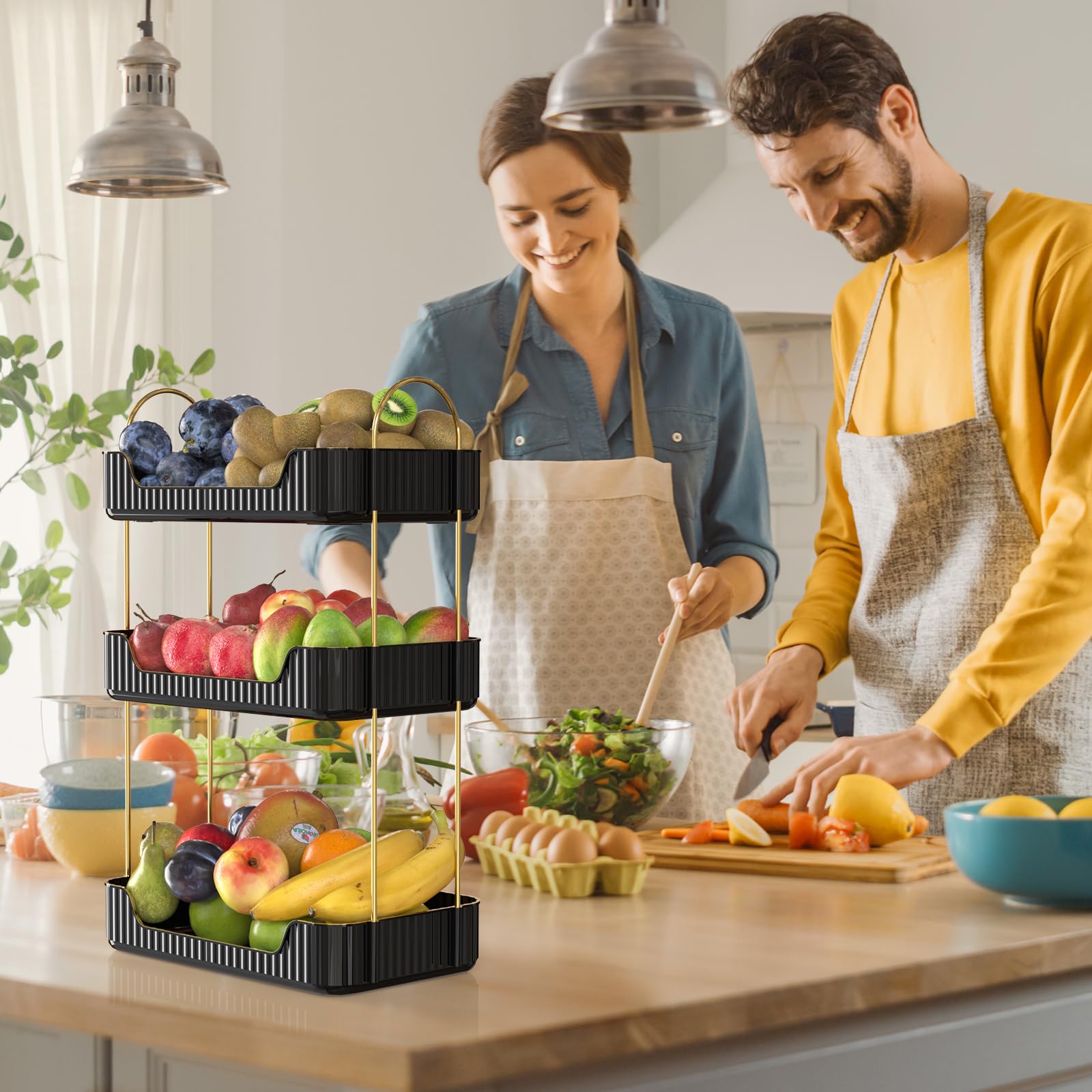 JNFUZ 3 Tier Kitchen Countertop Organizer, Counter Shelf Spice Rack Kitchen Shelves Storage Seasoning Coffee Station Organization for Cabinet Fruit Basket Bathroom Countertop Rack (Black, 3 Tier)
