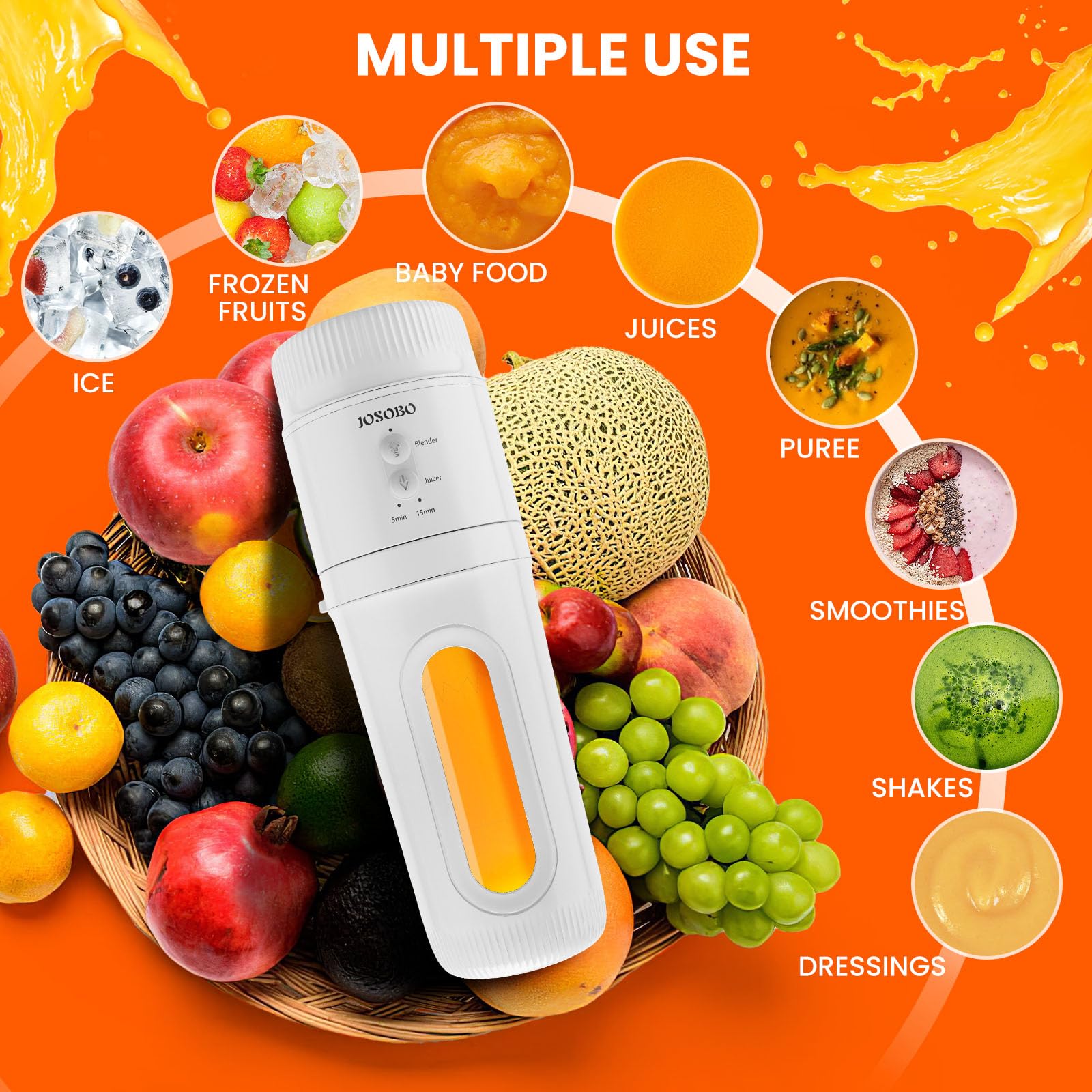 - 🍊【3-in-1 Multi-Functional Blender】Upgraded double-sided blending head with juicing accessories, this is not just a portable blender, but also an electric citrus juicer as well as a pure juice extractor. Equipped with an accompanying cup lid, enjoy fresh juice.