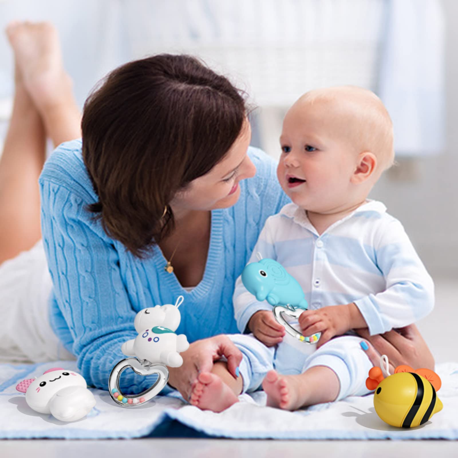 - [5-in-1 All-Round Development] 5 detachable toys, fully meet the baby's growth needs. Unicorns and elephants rattle, rabbits and bees rattle with Chew, and mirrors are an important form of self-discovery.