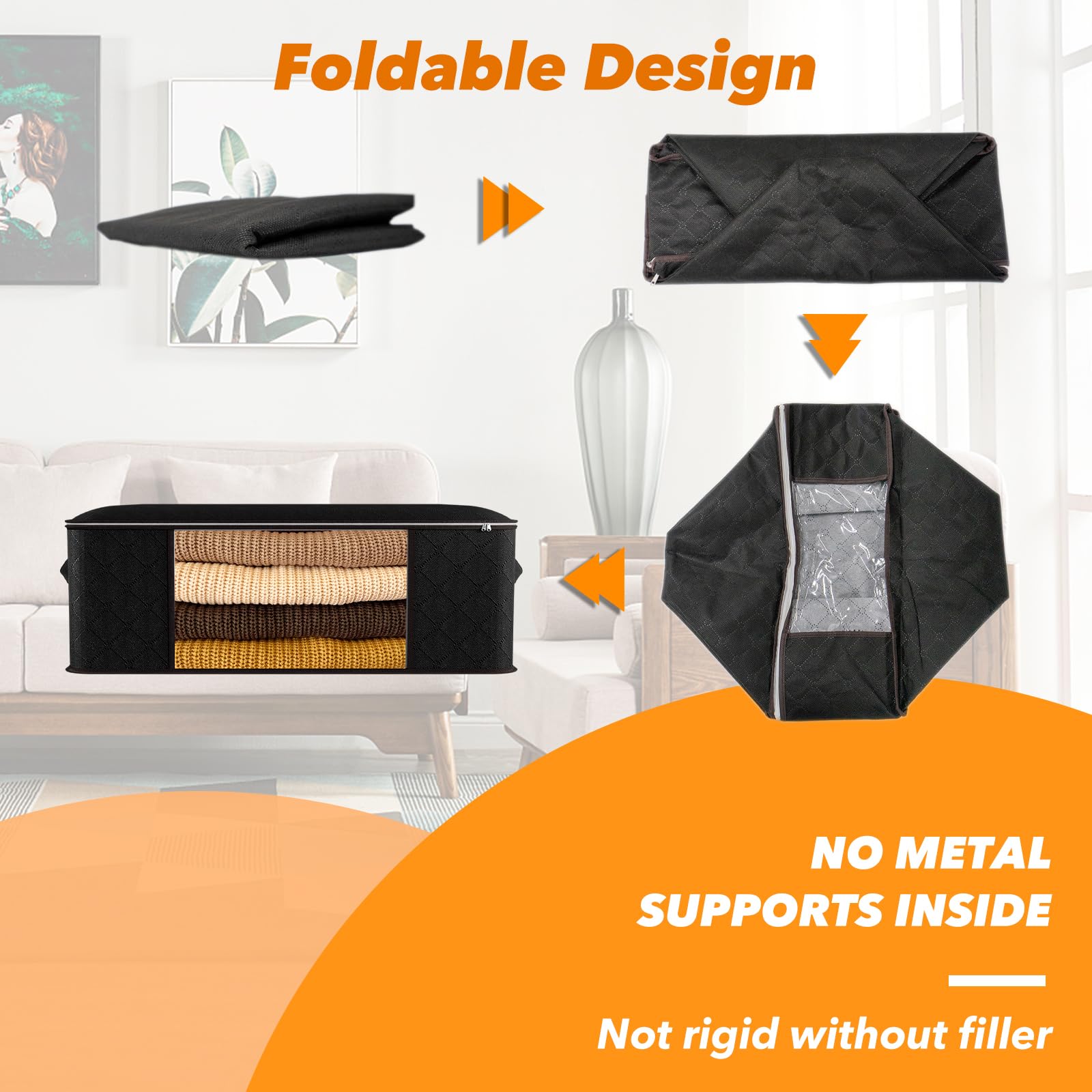 Joymeezo 3 Pack 35L Storage Bags,Clothes Storage Bins Foldable Closet Organizers Storage Bags with Zipper& Handle for Clothing, Blanket, Sweaters and Plush Toys (Black)