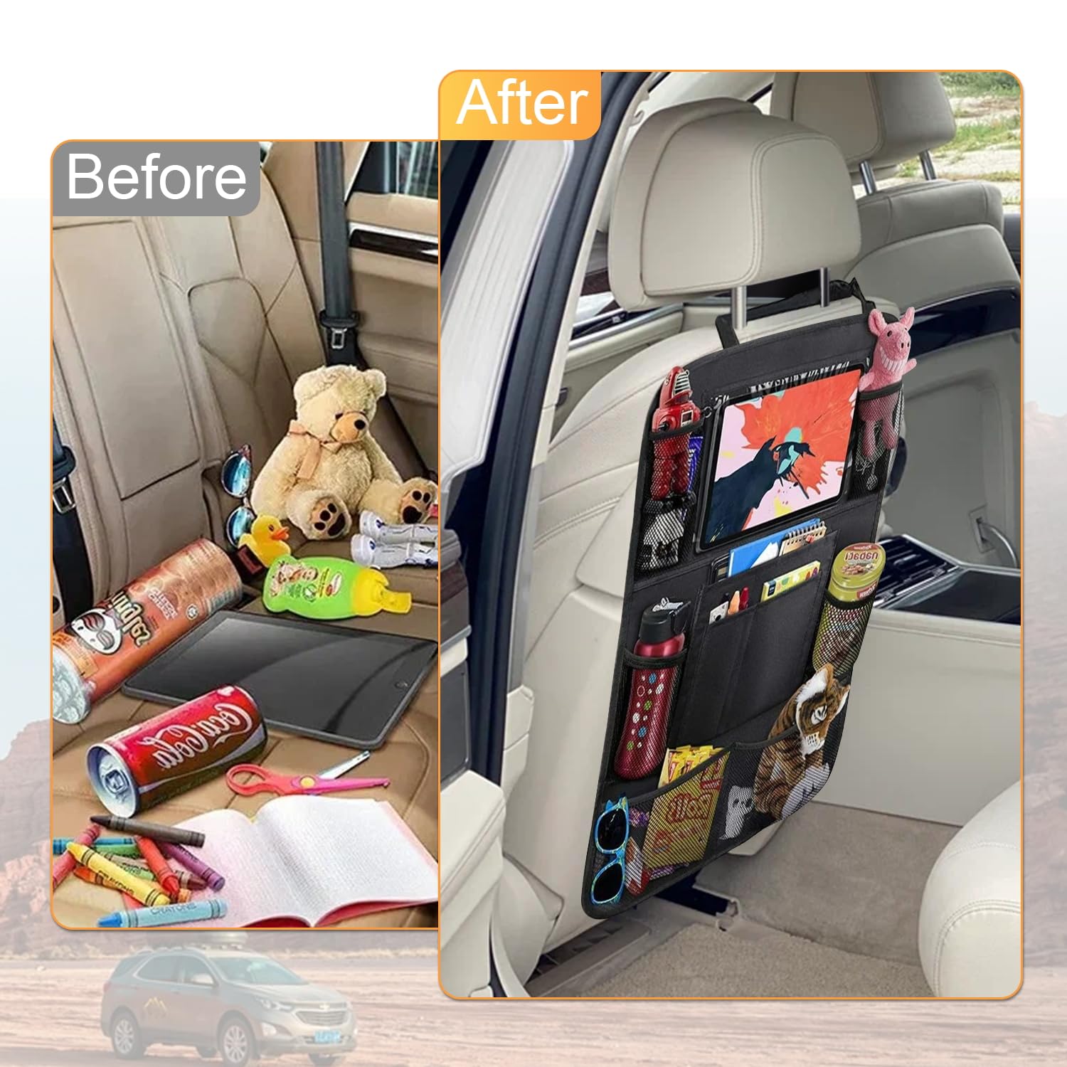 - [High-quality materials & waterproof] The car backeat origanizer is made of high-quality materials, and the seat back protector is made of strong 600D polyester material to protect the seat from scratches, wear, dirt and abrasion. It is waterproof and easy to clean.