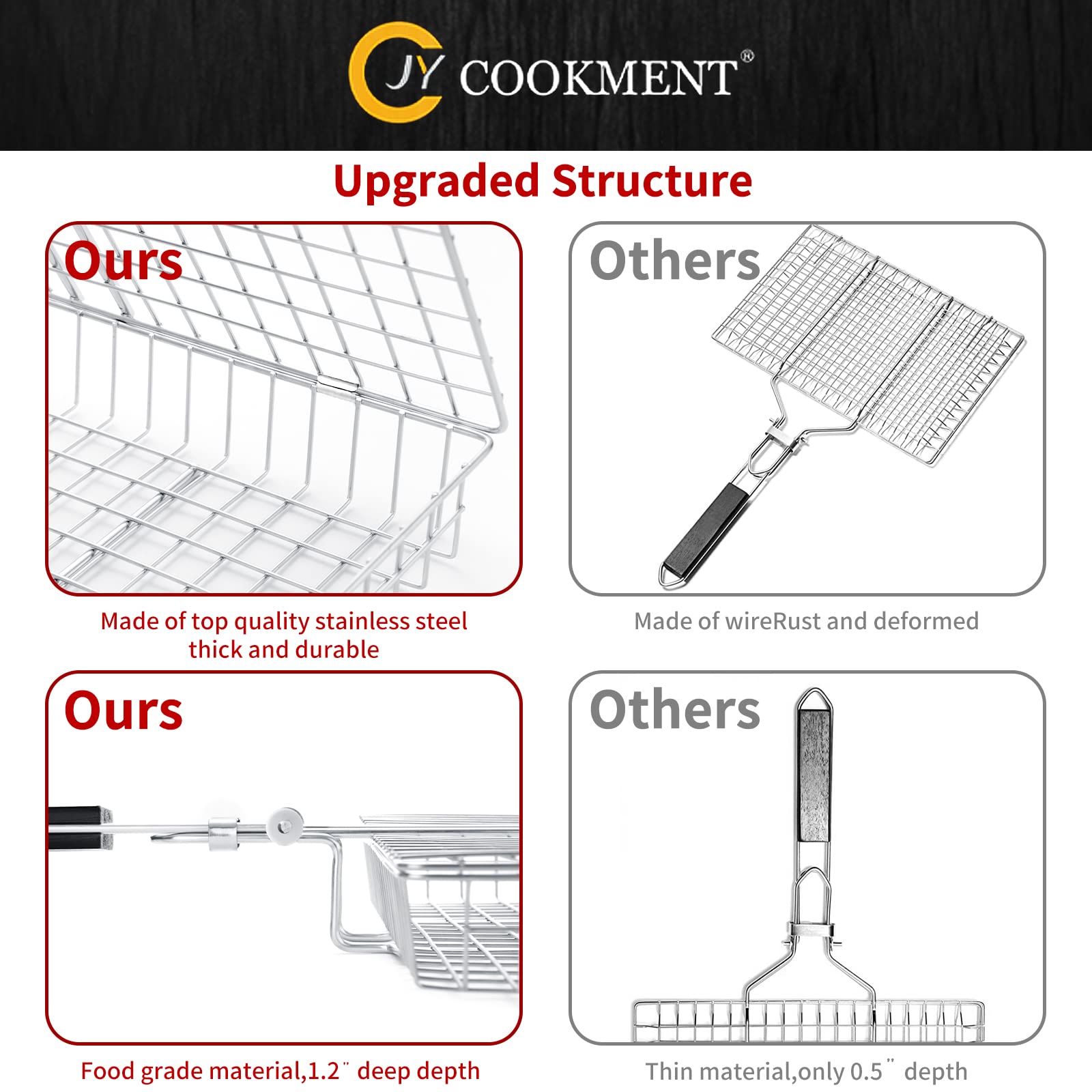 Details: JY COOKMENT grill basket is made of premium food-grade stainless steel that is durable for