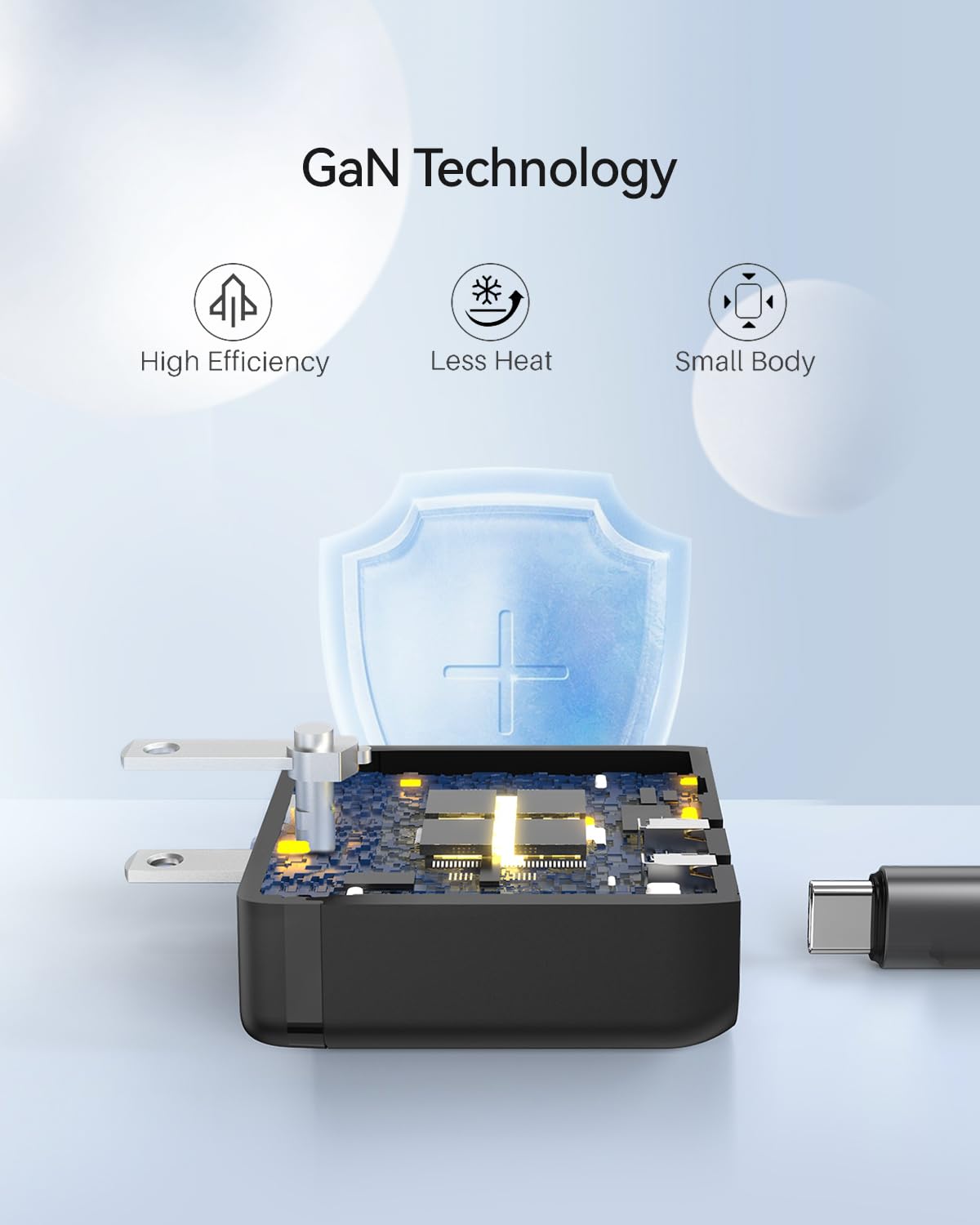 - Mini and Powerful - The 45w usb c wall charger is 50% smaller than standard 45W chargers, with foldable plug design can be easy to fit into a pocket or backpack to carry with you wherever you go.