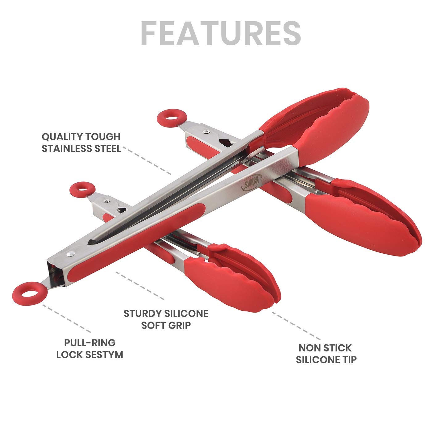 - STRONG PULL RING TECHNOLOGY: Mechanical locking function and hanging loop, designed for convenient air drying it holds and closes for easy storage - the Silicone Tong tips and handles gives it an easy grip on your food and is comfortable when using.