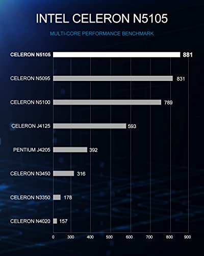 - [Powerful mini pc]---KAMRUI mini pc is the 11 generation Intel Celeron Quad-Core N5105 processor,base frequency 2.0GHz, up to 2.9 GHz,4 threads 4MB cache .It runs much faster than i3-5005U, N3450, N5095,N5100,J3455, J4125, J4105 etc chips. Loaded With 16GM DDR4 Ram, 512 GB M.2 SATA, Windows 11 Pro 64 Bit.