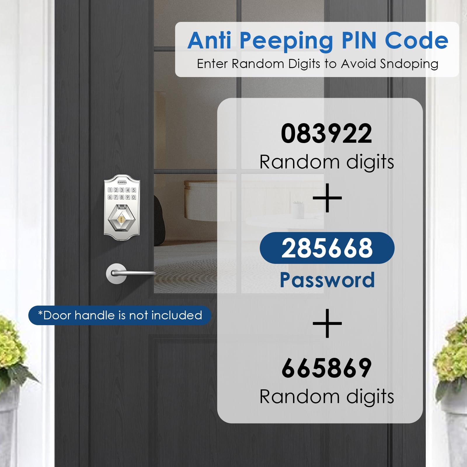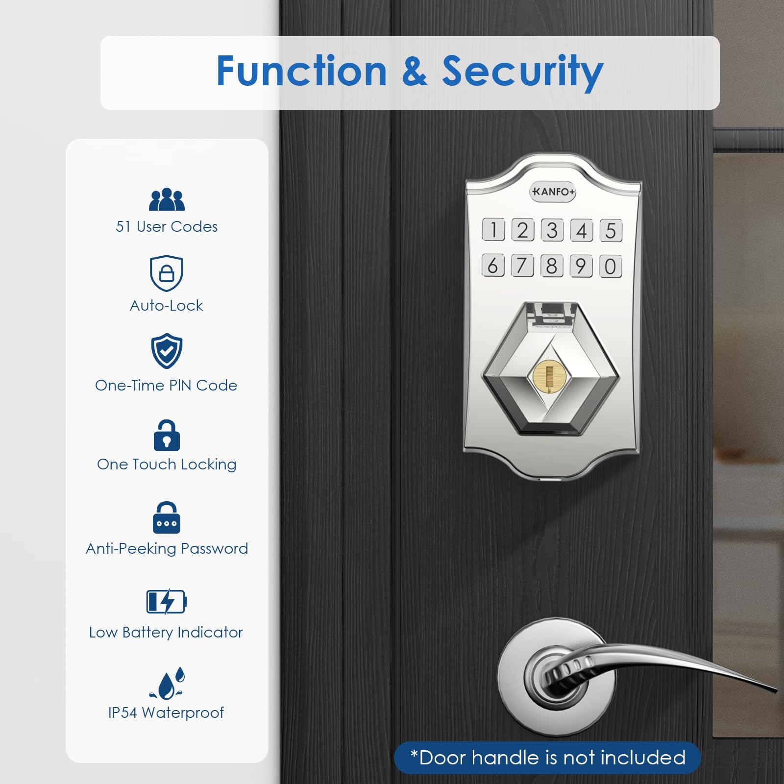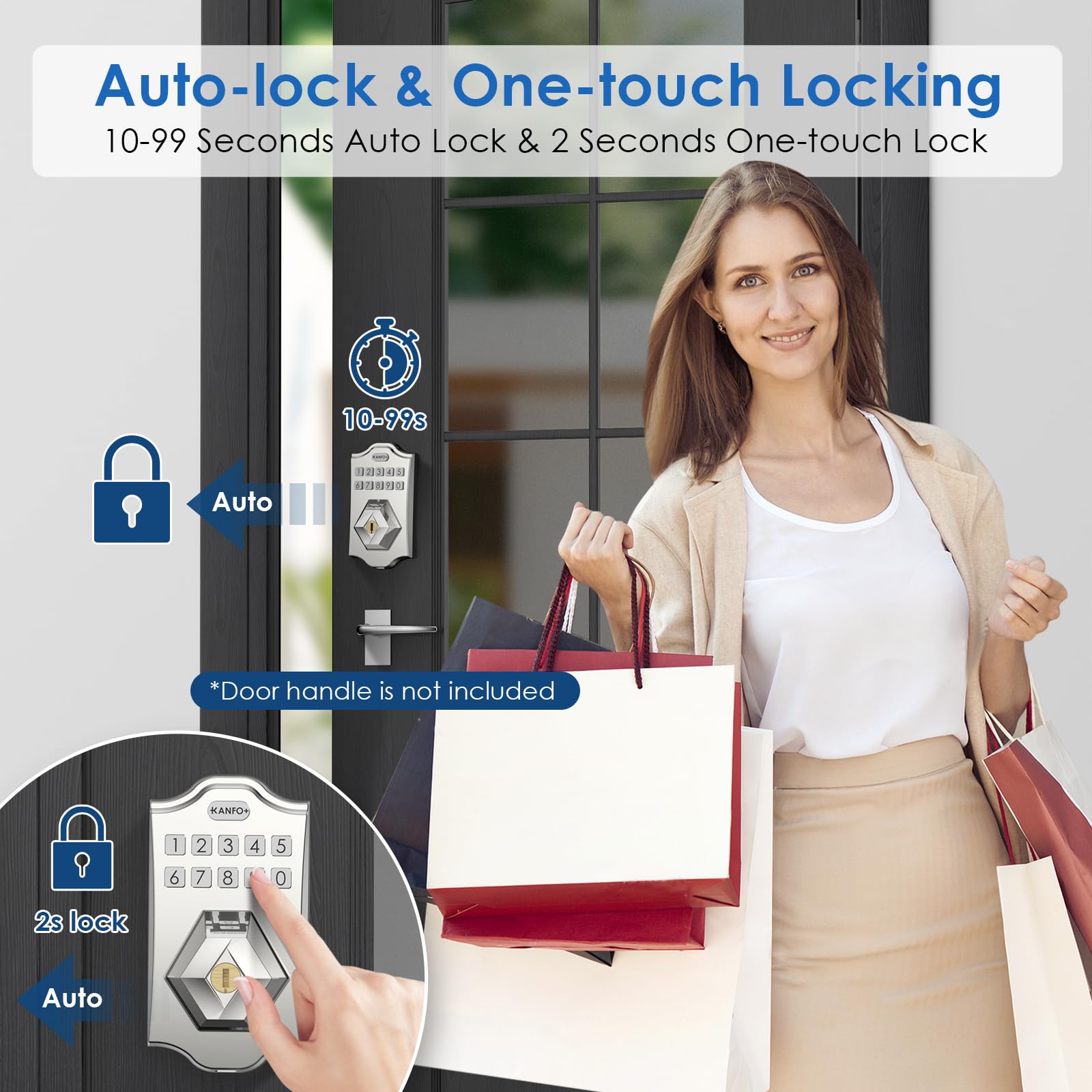 - [Auto Locking] KANFOX smart door lock with automatic lock, can be set to 10-99 seconds lock, one key automatic lock, hold down any key on the keyboard for 2 seconds to lock.