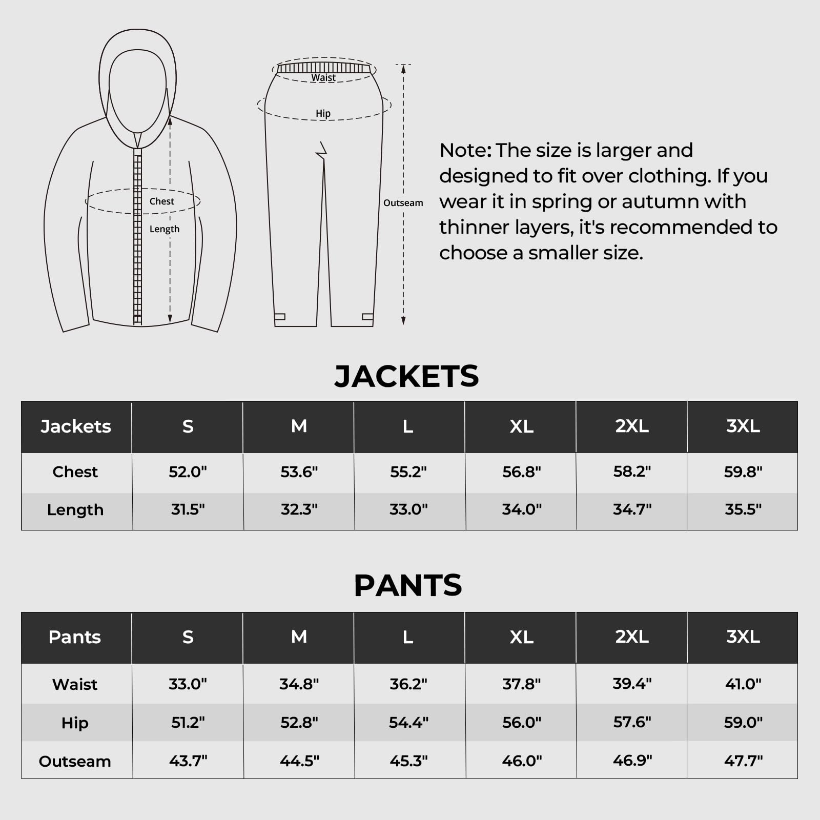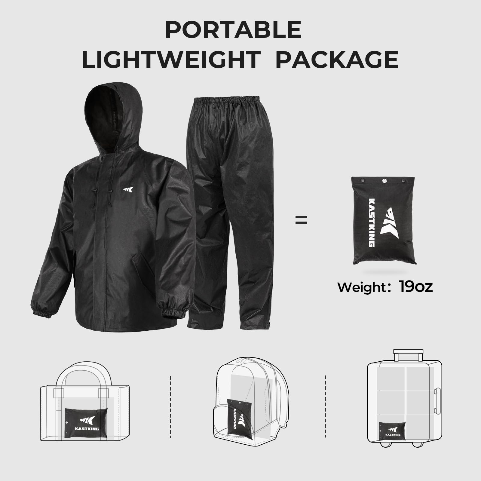 - 100% Waterproof Protection & Sizing: Experience unbeatable dryness with our AquaLite Rain Suit, featuring advanced waterproof technology to keep you dry in the heaviest downpours. The rain suit is loose fit design. Designed and sized to be worn over bulky base layers, if wearing thinner base layers it is recommended to select a smaller size. (Note: The dimensions for each size are larger than other KastKing rain gear series.)