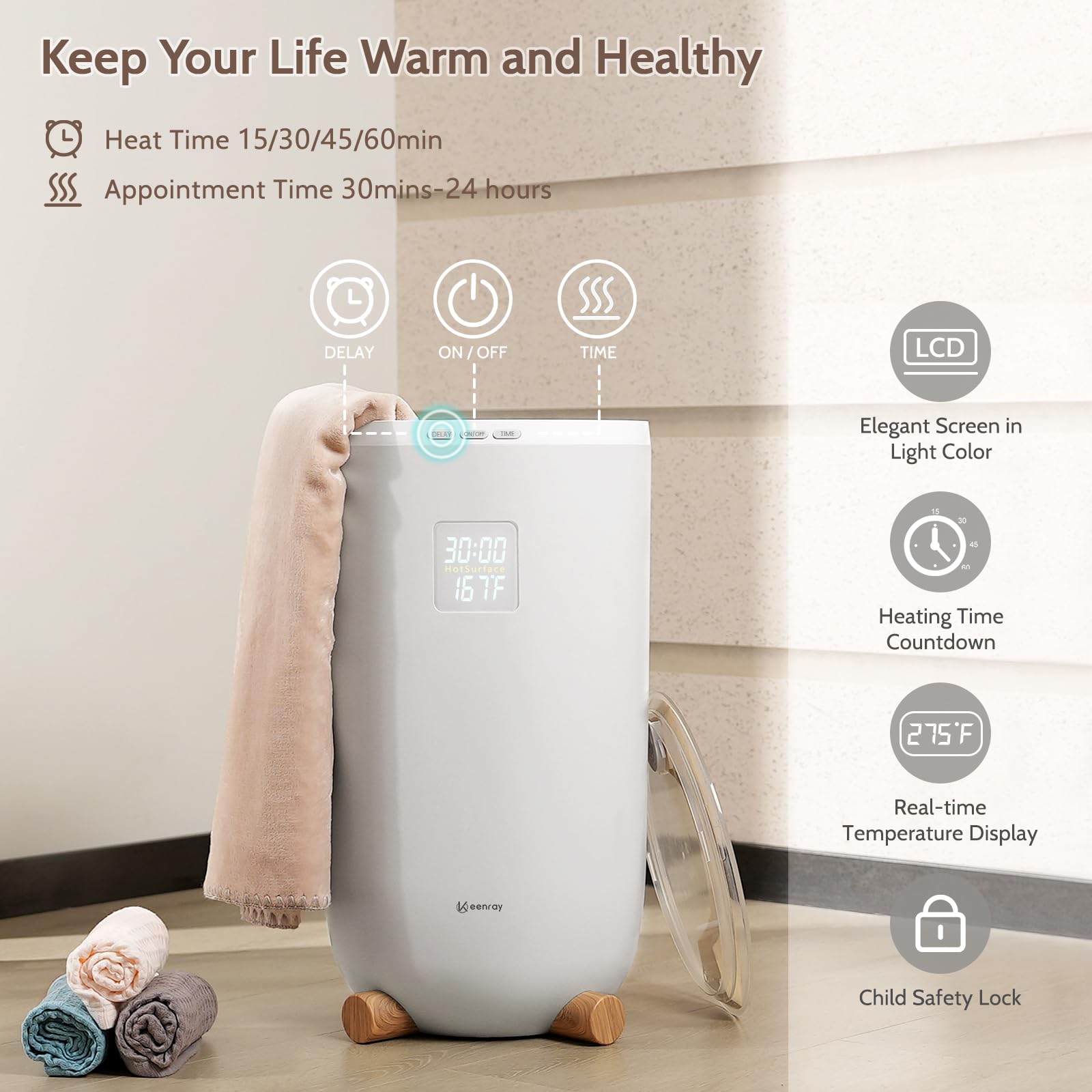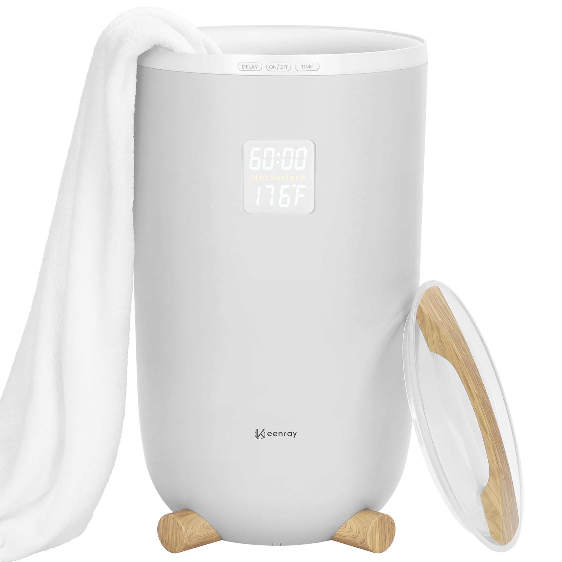 Keenray Towel Warmer for Bathroom, Luxury Towel Warmer Bucket with Timer, LED Display for Time and Temperature, Delay Time Up to 24 Hours, Child Lock, Hot Towel Heater, Gifts for Mom,Dad,Him,Her, Grey