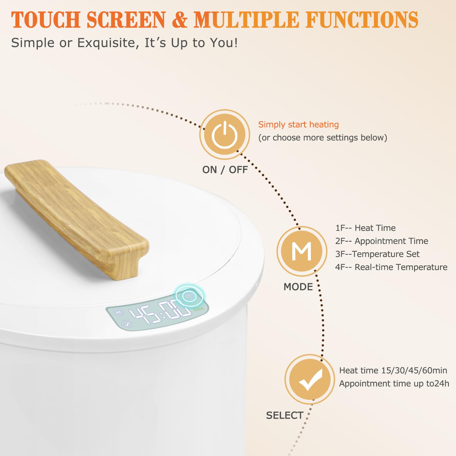 - Multiple Heating Modes - Mode1(F1) Heating Time: The towel warmer for bathroom can warm the towel for 15/30/45/60 minutes before automatically shutting off; Mode2(F2) Delay: The towel warmer bucket is set in up to 24-hour delay timer; Mode3(F3) Heat-Set: The towel bucket can warm your towel into 75℃(167℉), 80℃(176℉) or 85℃(185℉). Mode4(F4) Real time temperature check.