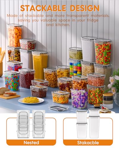 - 【Kitchen Organization】24 pack airtight food storage containers with lids are stackable and highly transparent design, saving you valuable space in your pantry and kitchen. The sequential stacking and ordering design allows you to easily nest the containers together, keeping your kitchen neat and organized.