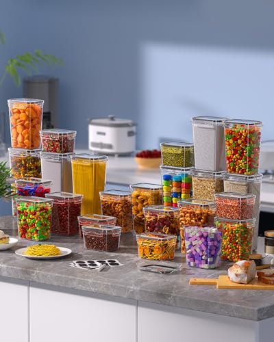 KEMETHY 24 PCS Airtight Food Storage Containers with Lids, Kitchen Pantry Organization and Storage, BPA-Free Plastic Scale Food Canisters for Cereal, Flour, Sugar, Dry Food, Include Labels & Marker