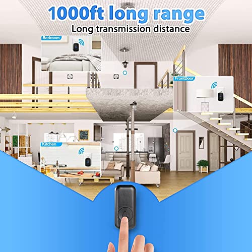 - 【1000ft Long Wireless Range】-The transmission distance between the receiver and button can reach 1000ft in open space, ensure you won't miss any visitors. Great for home, apartment, office & classroom.
