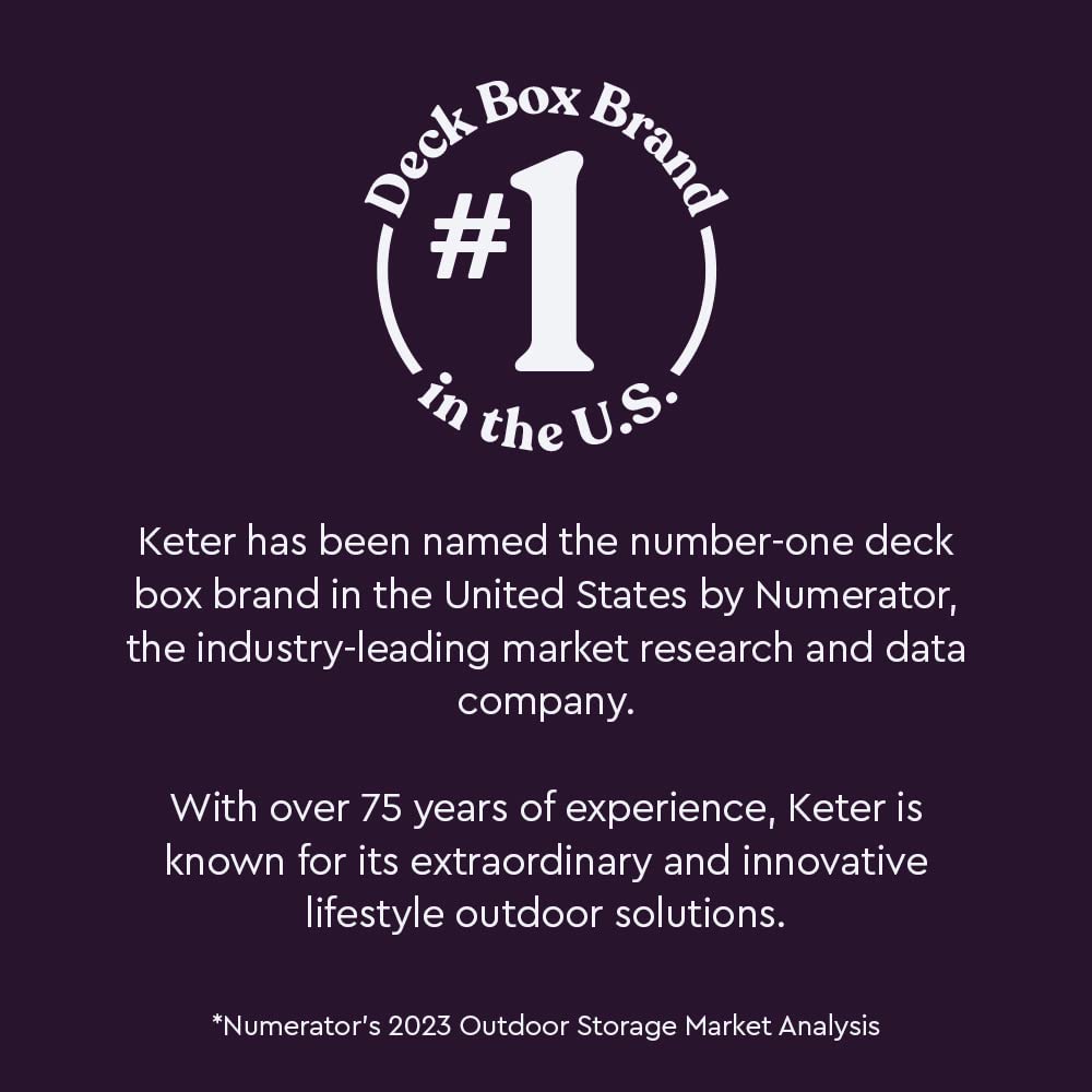 Details: From flower planters to deck cushions, the Marvel storage box holds it all. Store your patio pillows, garden tools, pool tools and deck supplies neatly within the large 71-gallon capacity space. You can also place it indoors at the foot of the bed or in a room to hold extra bedding, and seasonal clothing. Because of its durable construction, this storage box never buckles or expands no matter how much you store. This resin storage box has built-in handles and rollers for easy mobility, and it only takes about five minutes to assemble with no tools required. Other benefits of the Keter Plastic box include: Dimensions: 45. 9 in. W x 15. 6 in. D x 22. 4 in. H Large storage capacity can hold up to 71 Gallons Durable polypropylene construction UV-resistant so it will not fade in the sun Never rusts, dents, or peels Complete with built-in handles so it is easy to move Keeps items dry and well ventilated Appealing decorative paneled design Ideal for both interior and exterior use