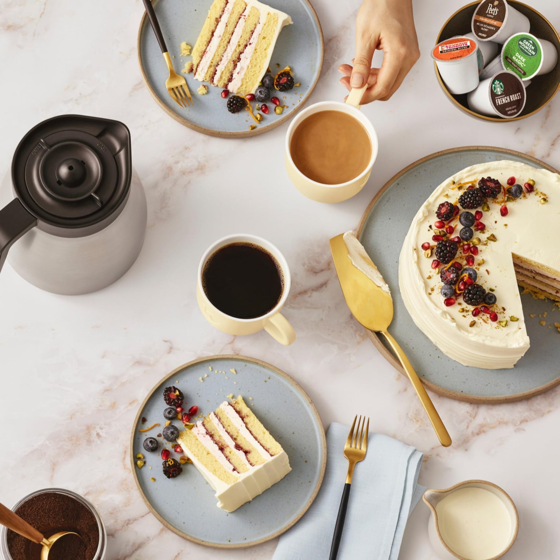 - BREW A CUP AND A CARAFE: Use both ground coffee and K-Cup pods.